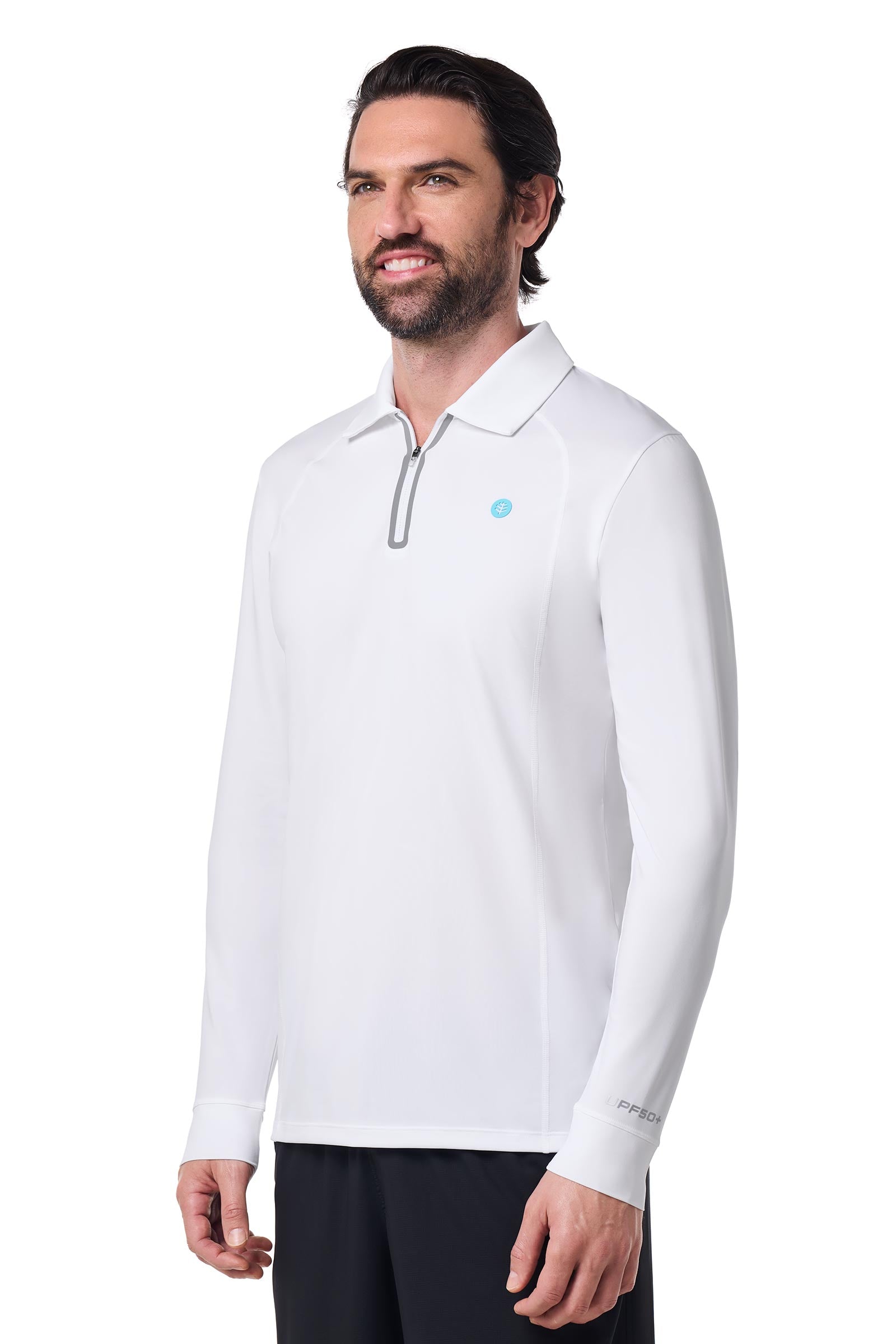 Elevate your golf game with our NEW UPF 50+ Men's 19th Hole Drive Golf Long Sleeve Polo. Crafted from our Active Athlon fabric, this polo is designed for cutting-edge performance and sun protection. The exclusive Cooltectâ„¢ technology ensures accelerated moisture-wicking, keeping you cool and comfortable throughout your game. With an antimicrobial finish for freshness, this soft, lightweight, and breathable polo offers UPF 50+ protection. The stylish bonded front zipper, long sleeves, and classic collar add a touch of sophistication to your golf attire. Stay active, stay protected, and make every swing count with the 19th Hole Drive Golf Long Sleeve Polo.