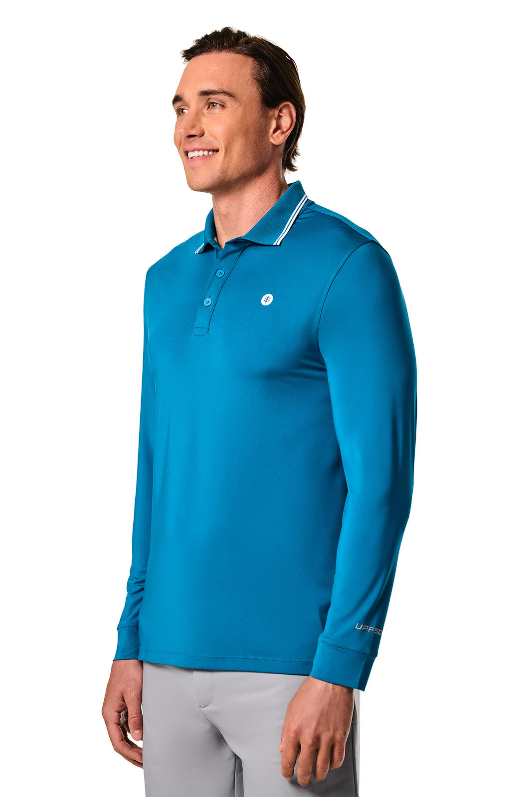 Add extra sun protection to your game with the Men's Erodym Long Sleeve Polo, designed for both tennis and golf enthusiasts. Lightweight and quick-drying, this short-sleeve polo will keep you comfortable on the course or court with its breathable Active Athlon™ fabric, featuring Cooltect™ technology to wick away moisture for a cooler workout.