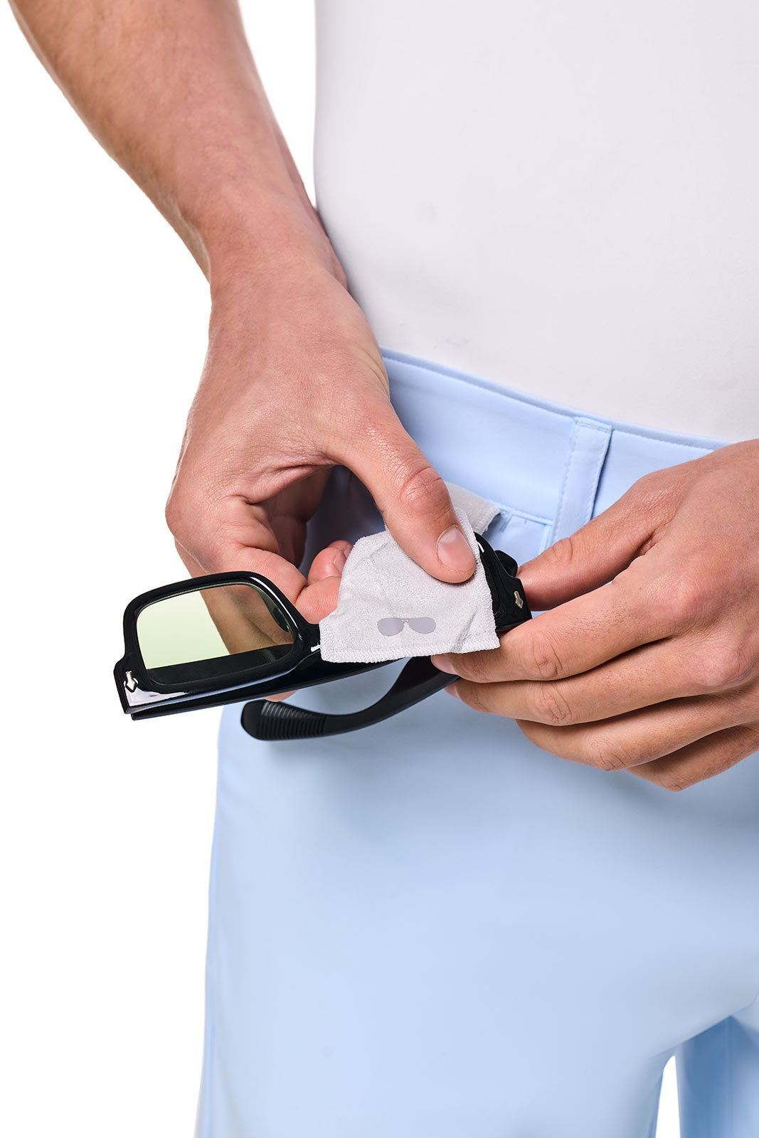 - Waistband mini pocket with microfiber sunglasses patch for lens cleaning