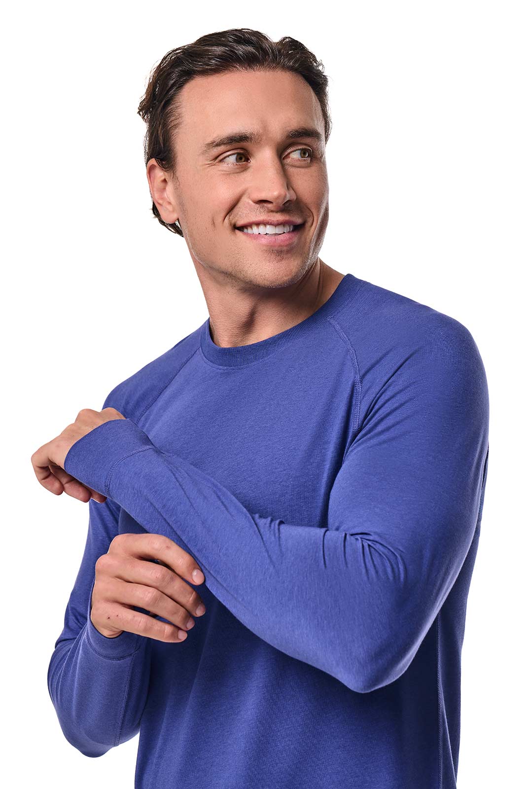 Sun protection is natural with this sporty LumaLeo Long Sleeve T-Shirt made from our exclusive, lightweight and super soft ZnO™ cotton. Its the perfect athleisure top for hanging out in the backyard, running errands or cheering on your favorite team. Designed in a relaxed fit with a classic crew neckline, this super soft, UPF 50+ sun protective t-shirt features raglan sleeves with discreet thumbholes for extended hand coverage only when you want it.
