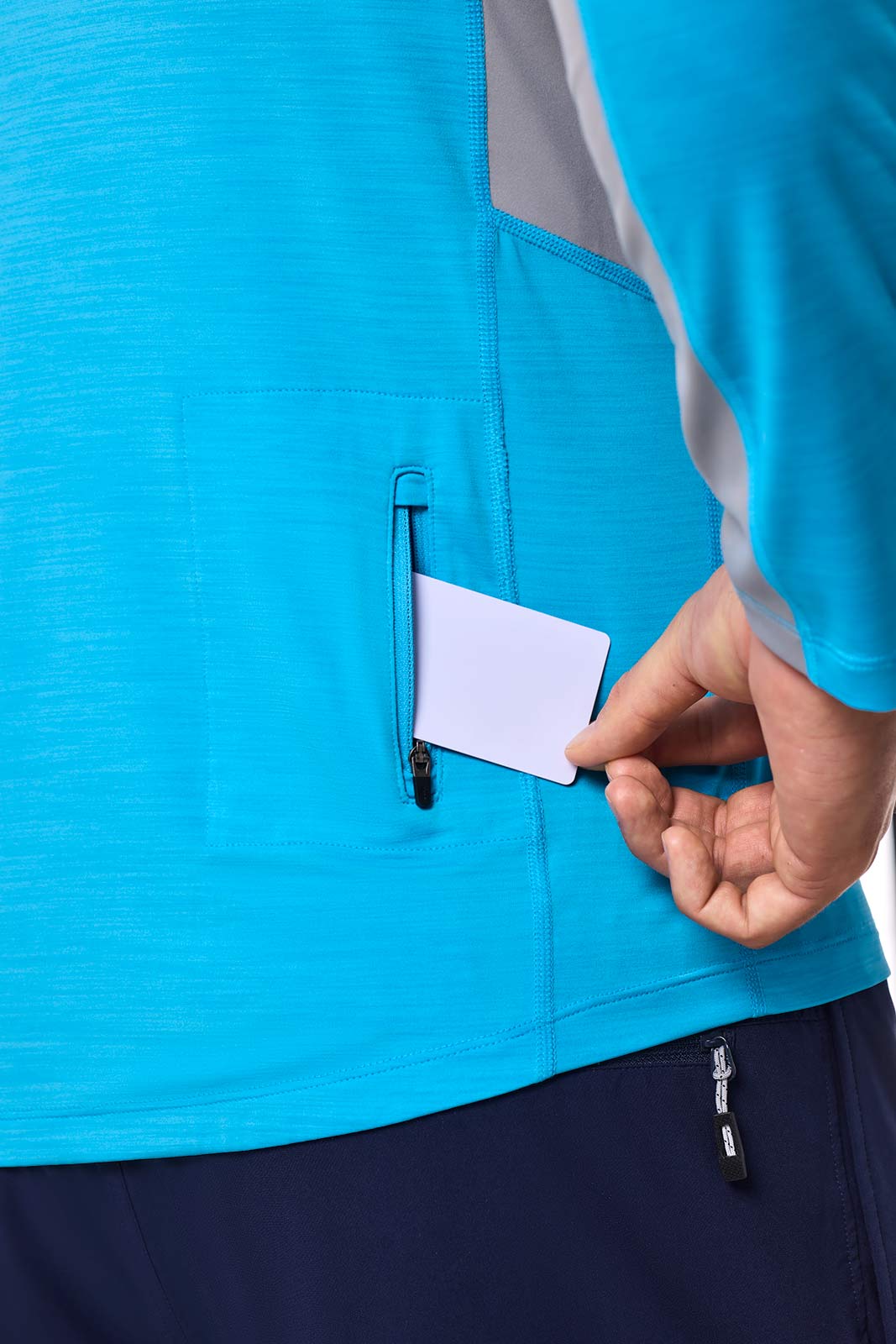 Designed with an active fit for all types of water activities, the Ultimate Long Sleeve Rash Guard is decked out with technical features to keep you comfortable and protected. Eyelets are included at the underarms for increased airflow and water drainage. A back zip pocket offers a place to stash a card or keys. This men’s rash guard stays in place with a loop inside the front hem that attaches to swim trunks and gripper elastic at the back hem to prevent ride up. The revolutionary water-repelling finish sheds water and enhances dry time.
