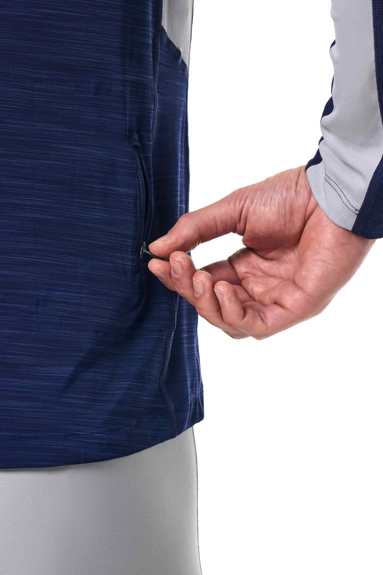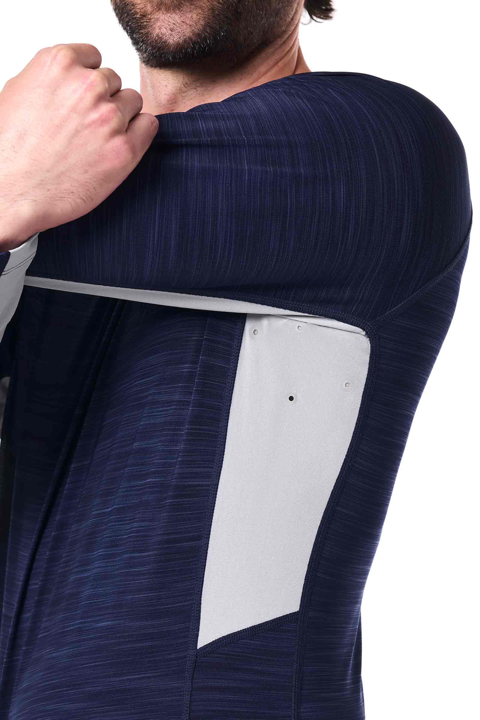 *The mesh ventilation panels featured on this garment provide increased air circulation to promote cooling and help the wearer stay dry. The ventilation panel areas of this product may be subject to lower levels of UPF protection when exposed to direct sunlight depending on use. We recommend the use of SPF and UPF protections for all exposed skin areas and areas that may require additional protection depending on your use.