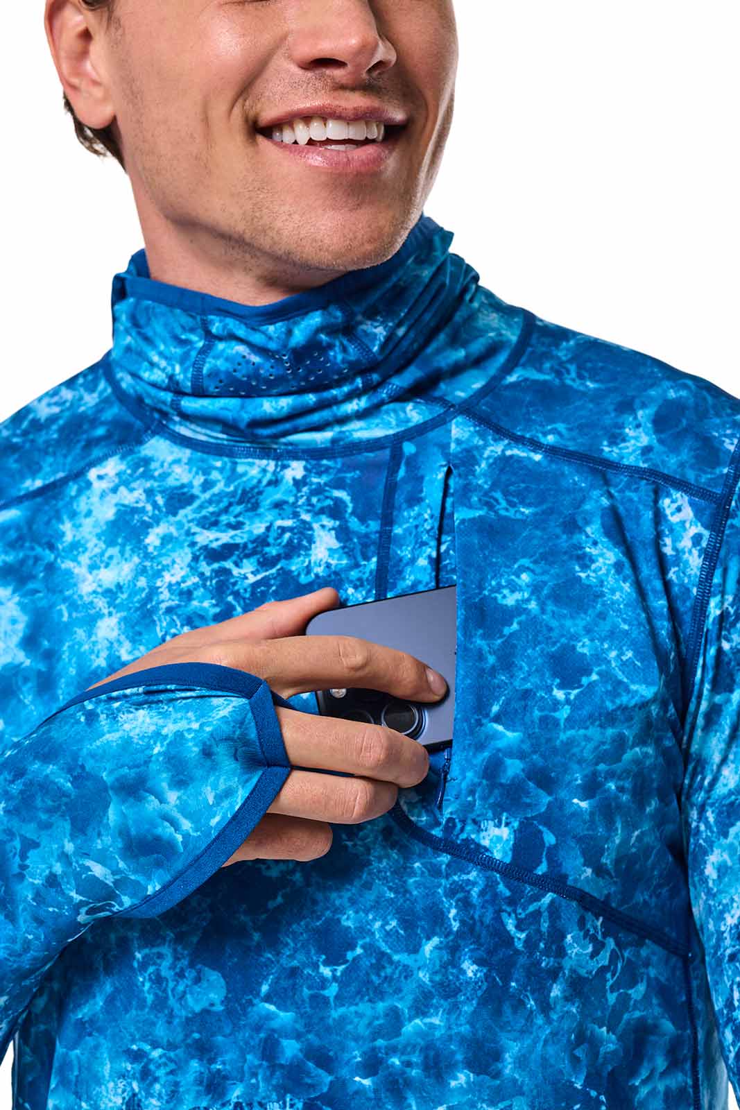 Men's Vented Andros Fishing Hoodie | Blue Water Print
