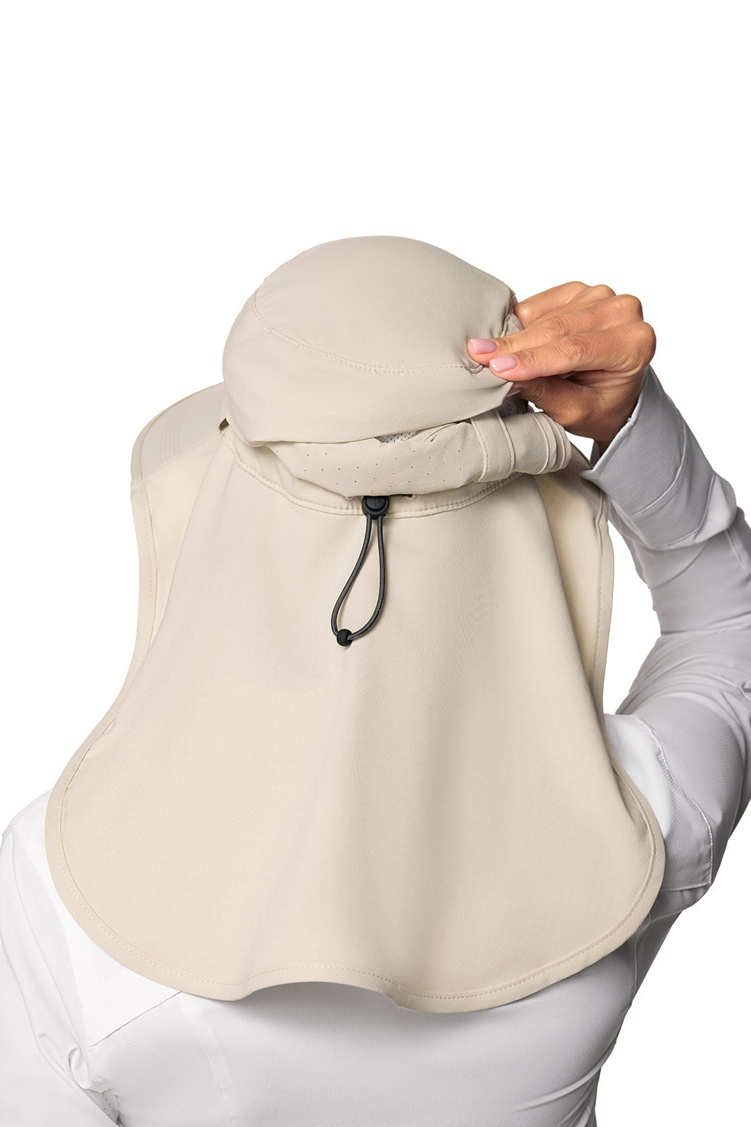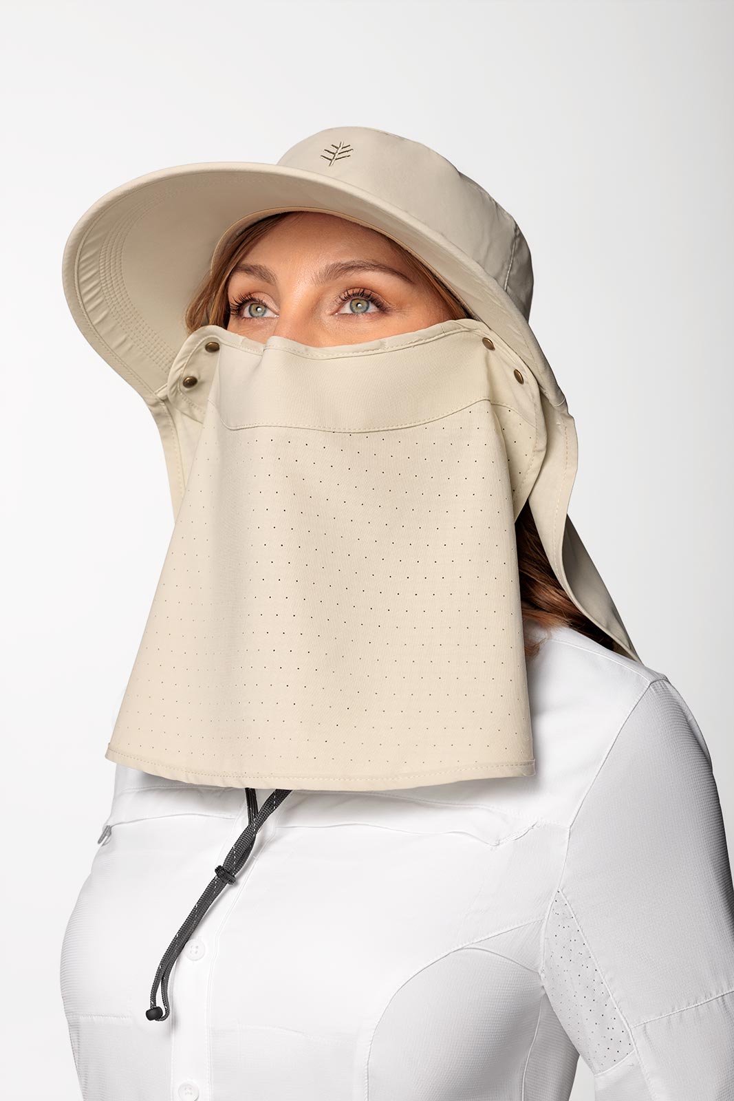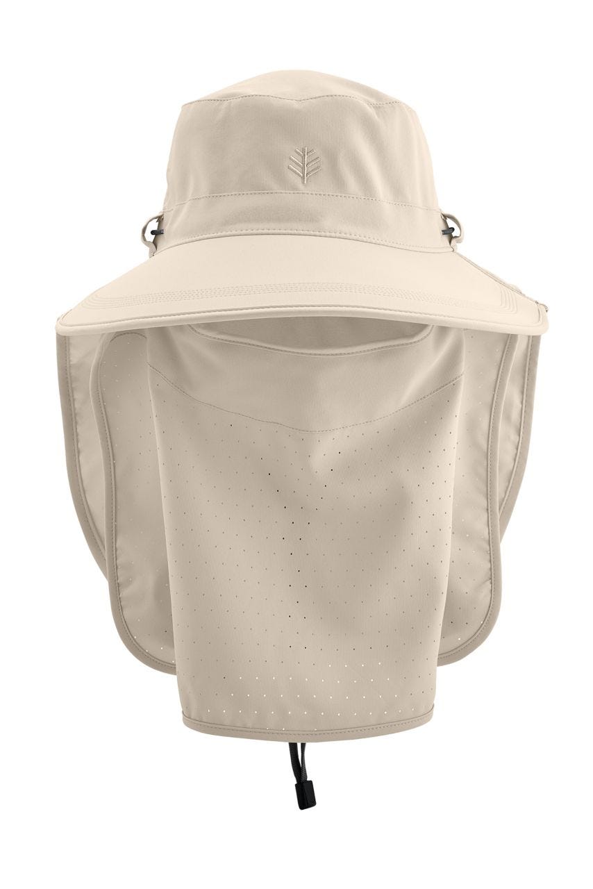 - Fold & tuck away back drape with Coolibar's signature Cooling finishing for a cool sensation when it comes into contact with moisture, such as sweat