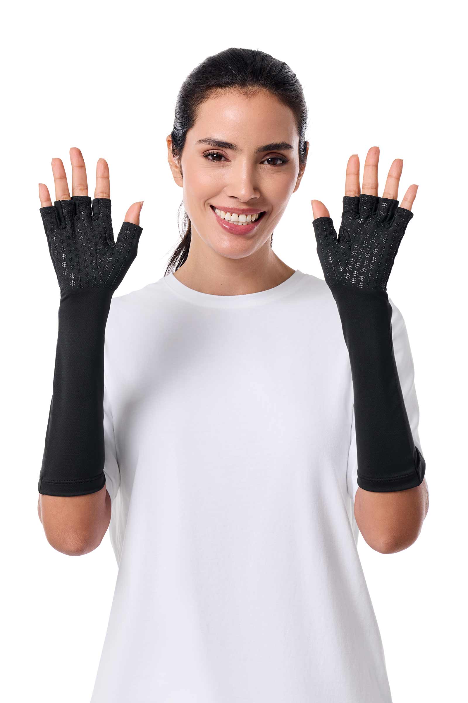 Unisex Bona UV Fingerless Mid-length Gloves - Black