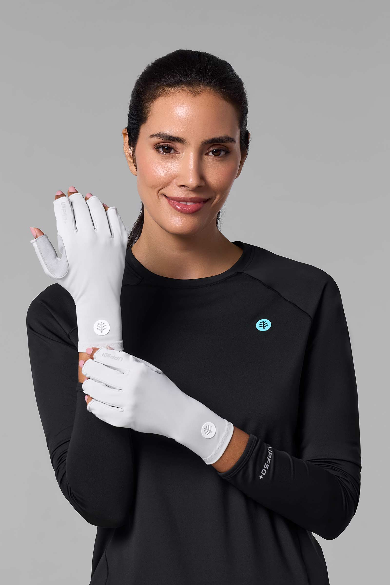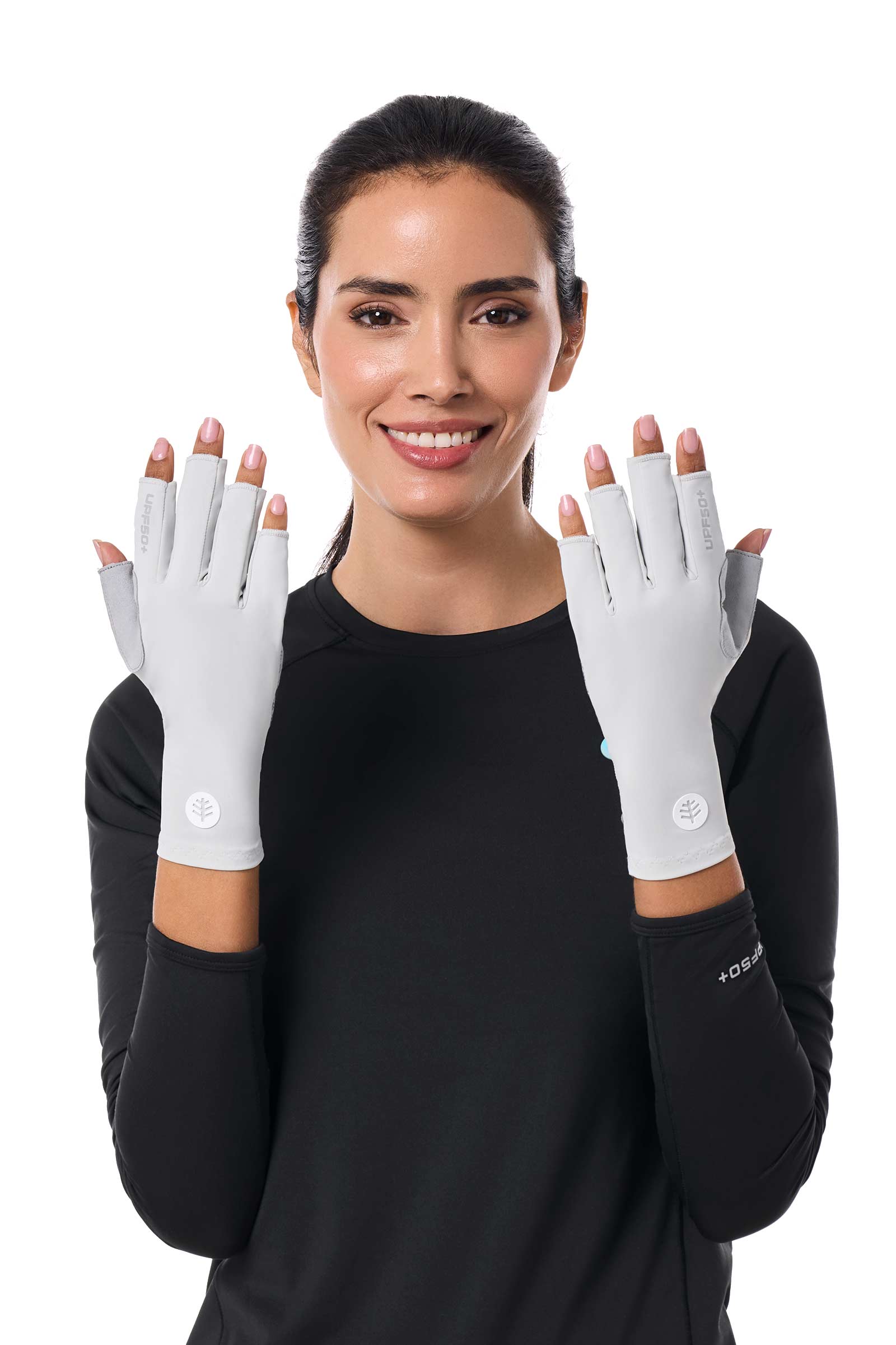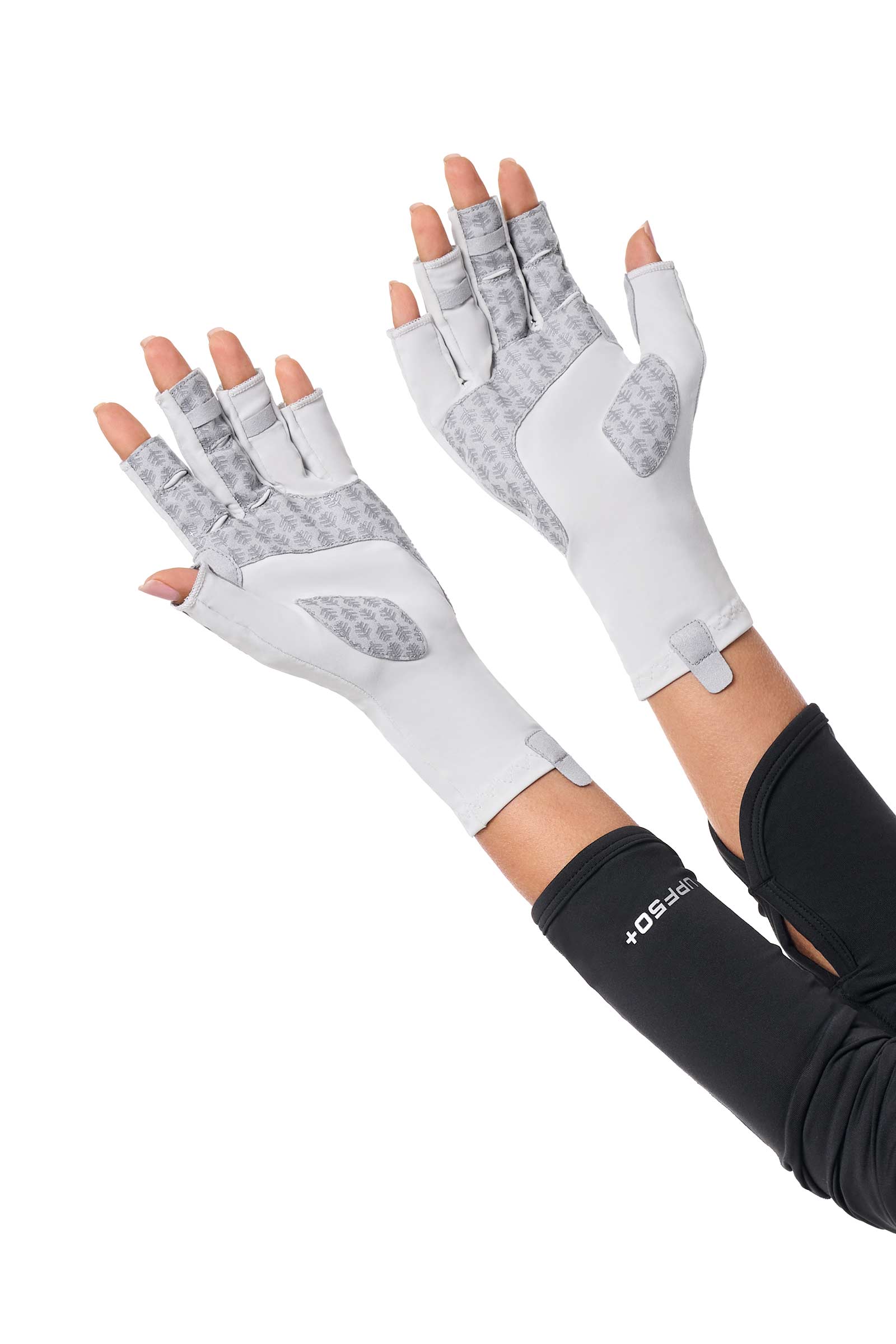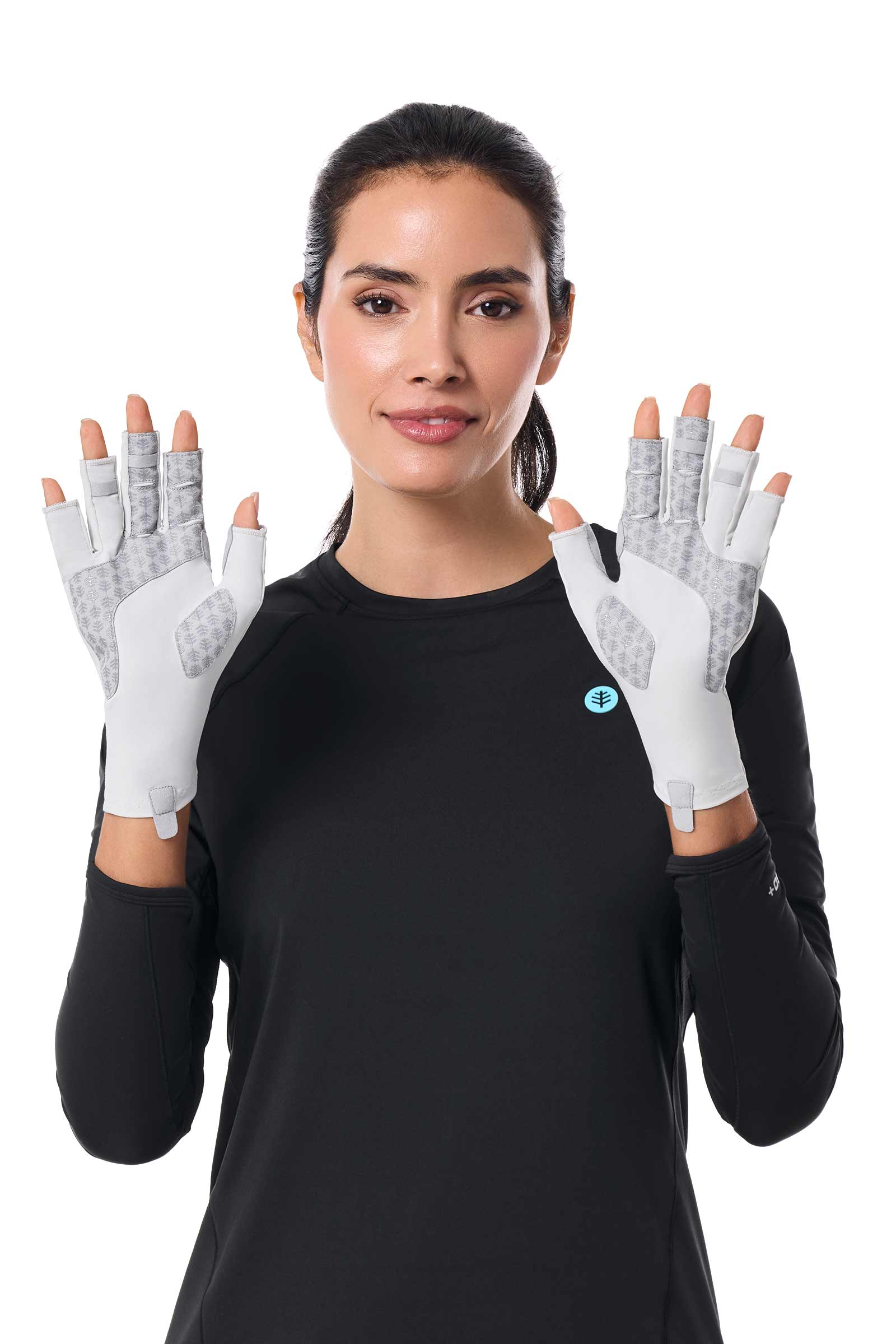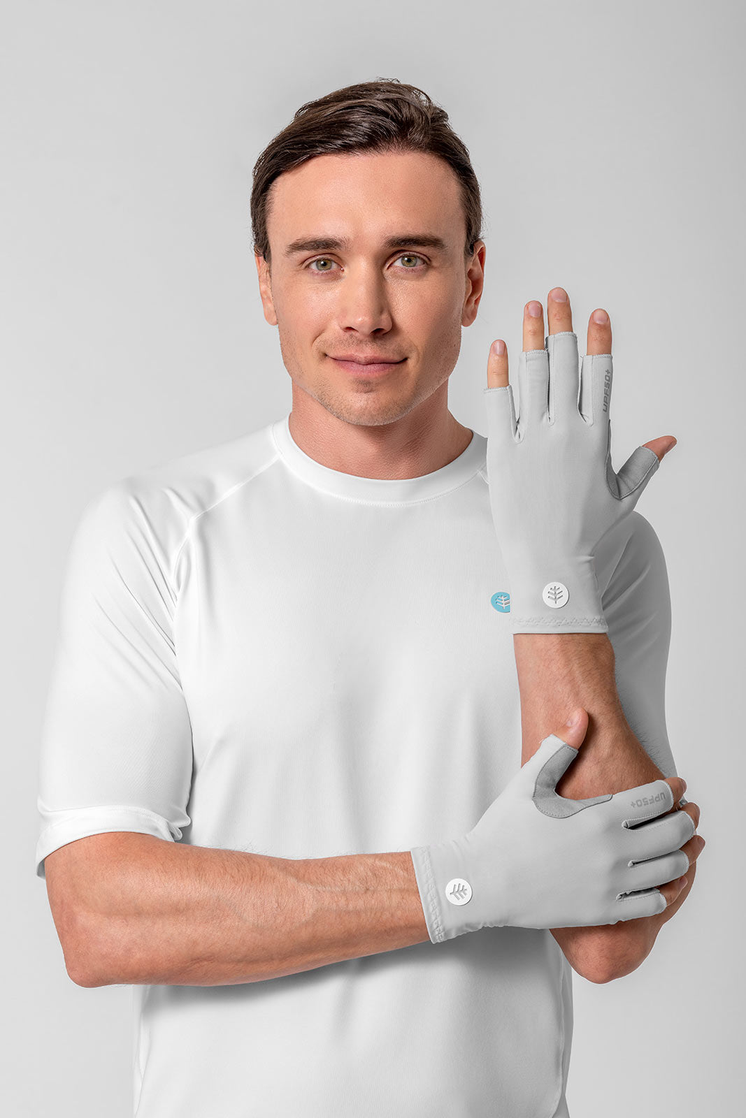 Introducing the NEW UPF 50+ MaxShield Multi-Sport Fingerless Gloves, perfect for ultimate sun protection during outdoor activities both in and out of the water. Whether you're biking, kayaking, or enjoying other outdoor adventures, these gloves safeguard your hands from 98% of UVA/UVB rays. Crafted with synthetic leather pads and a silicone pattern for enhanced grip, they ensure comfort and functionality. Features include two easy fingertip pulls for effortless removal, an easy-on pull tab, and lockstitch seams for prolonged durability. Stay protected and perform at your best with these versatile, sun-protective gloves.
