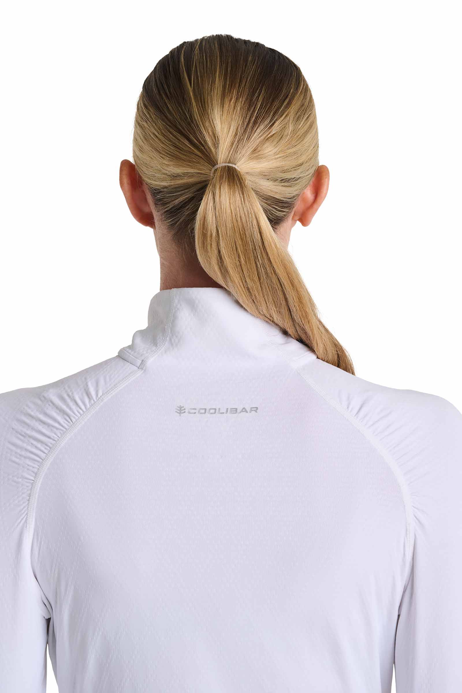 - Coolibar logo on upper back, UPF 50+ on left cuff