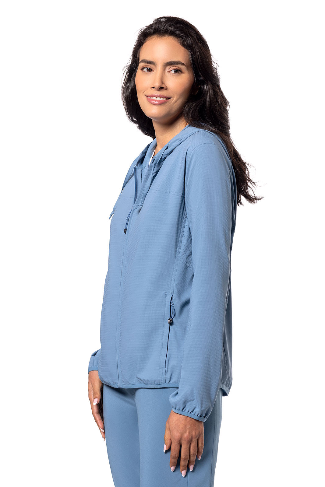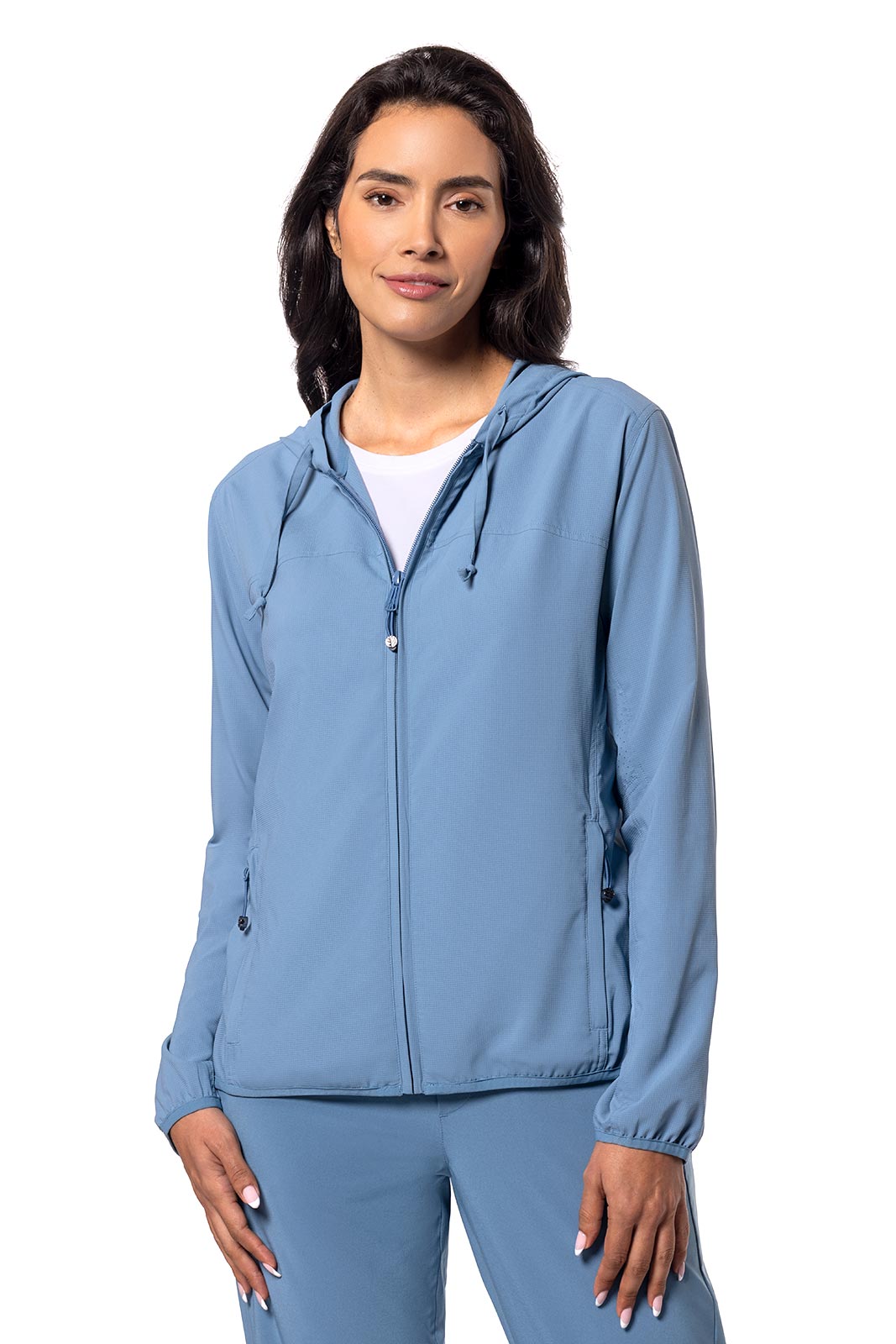 - Full-zip hoodie style with two-way zipper