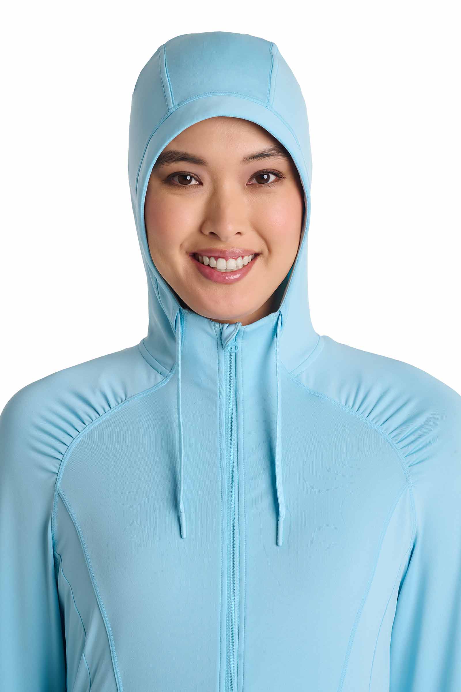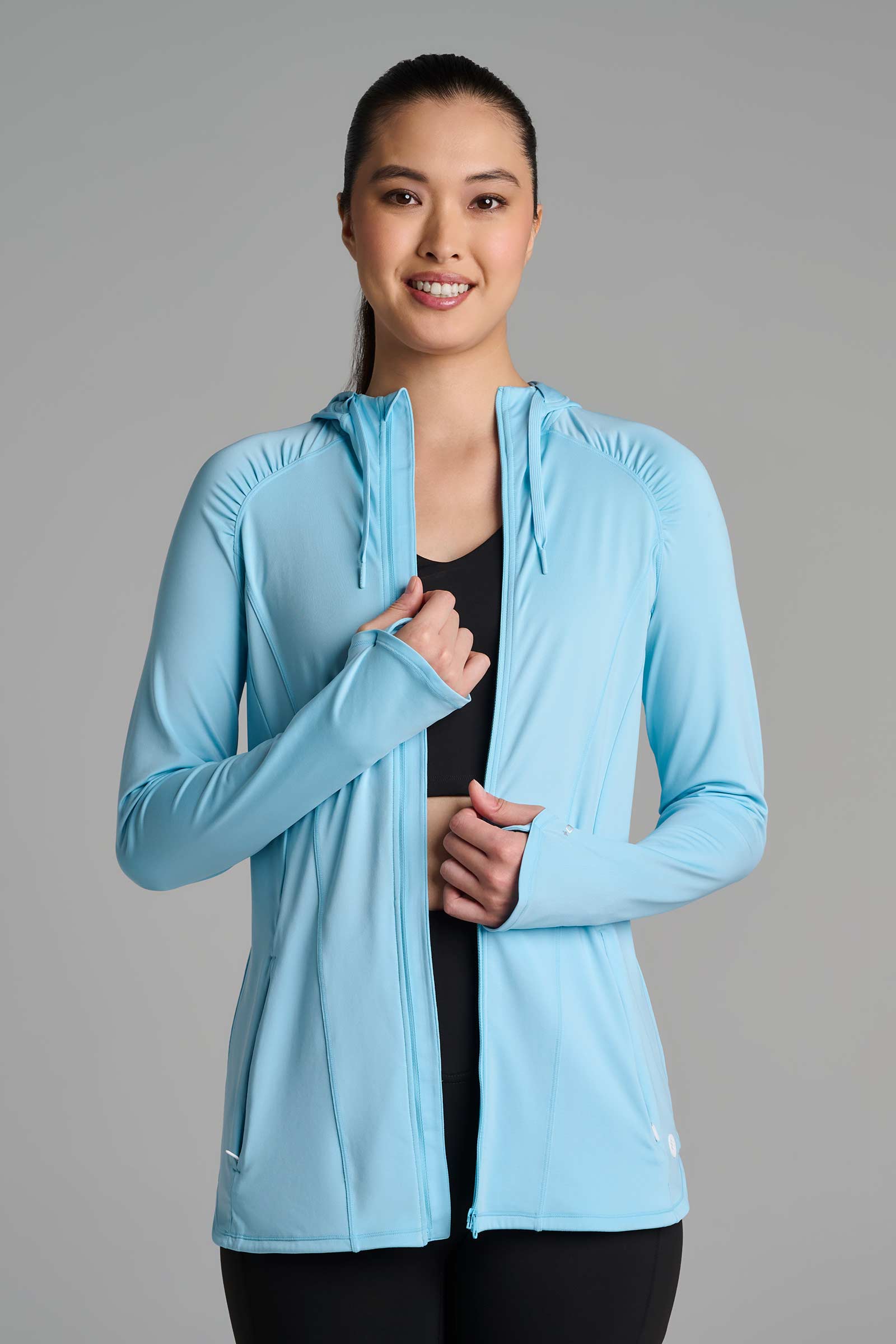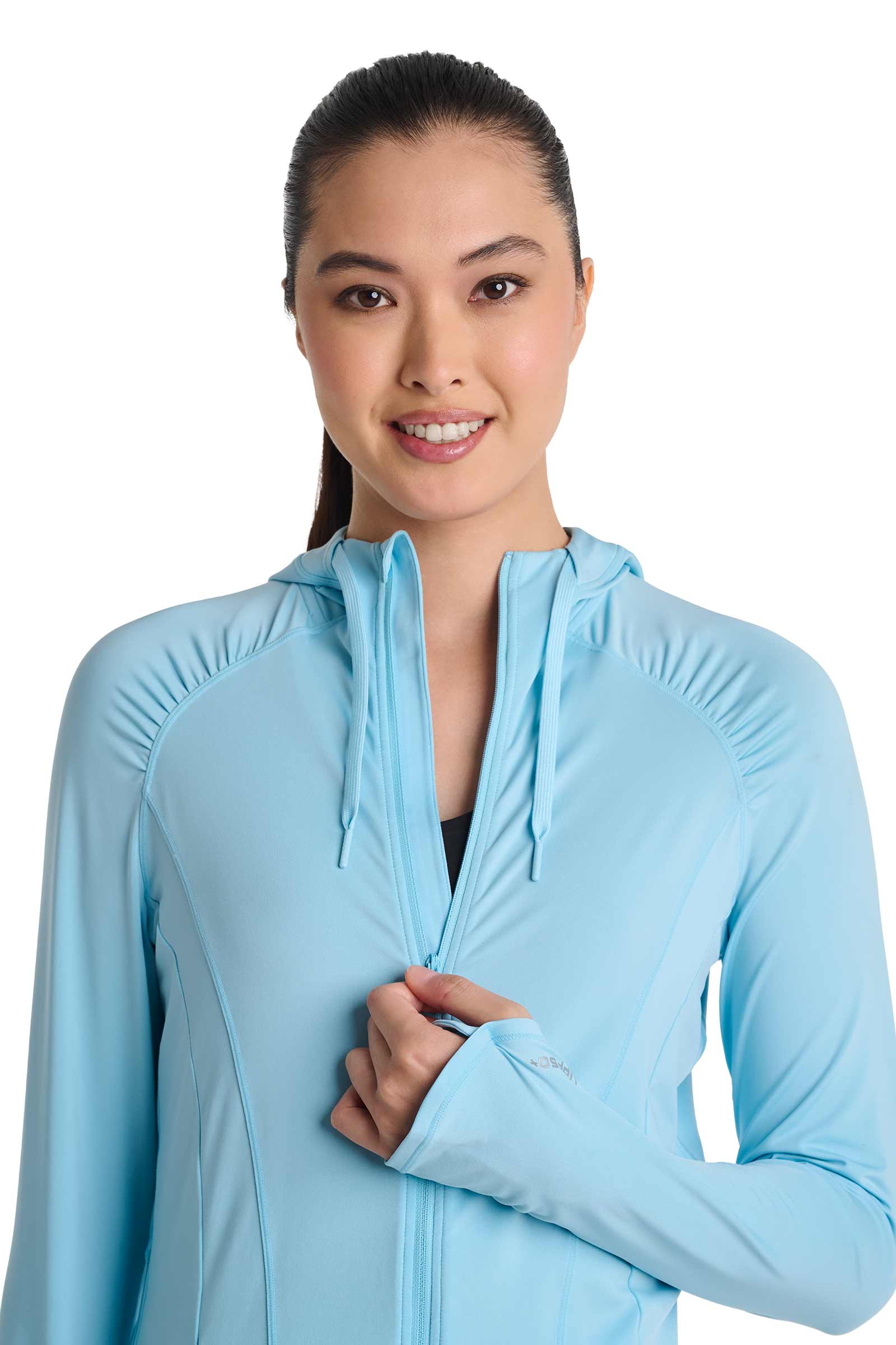 Say hello to your new favorite Women's athleisure hoodie! Engineered for breathability and powered by the same cooling fabric as our UPF 50+ fitness tees, you'll want to wear this lightweight Women's jacket long after your workout.