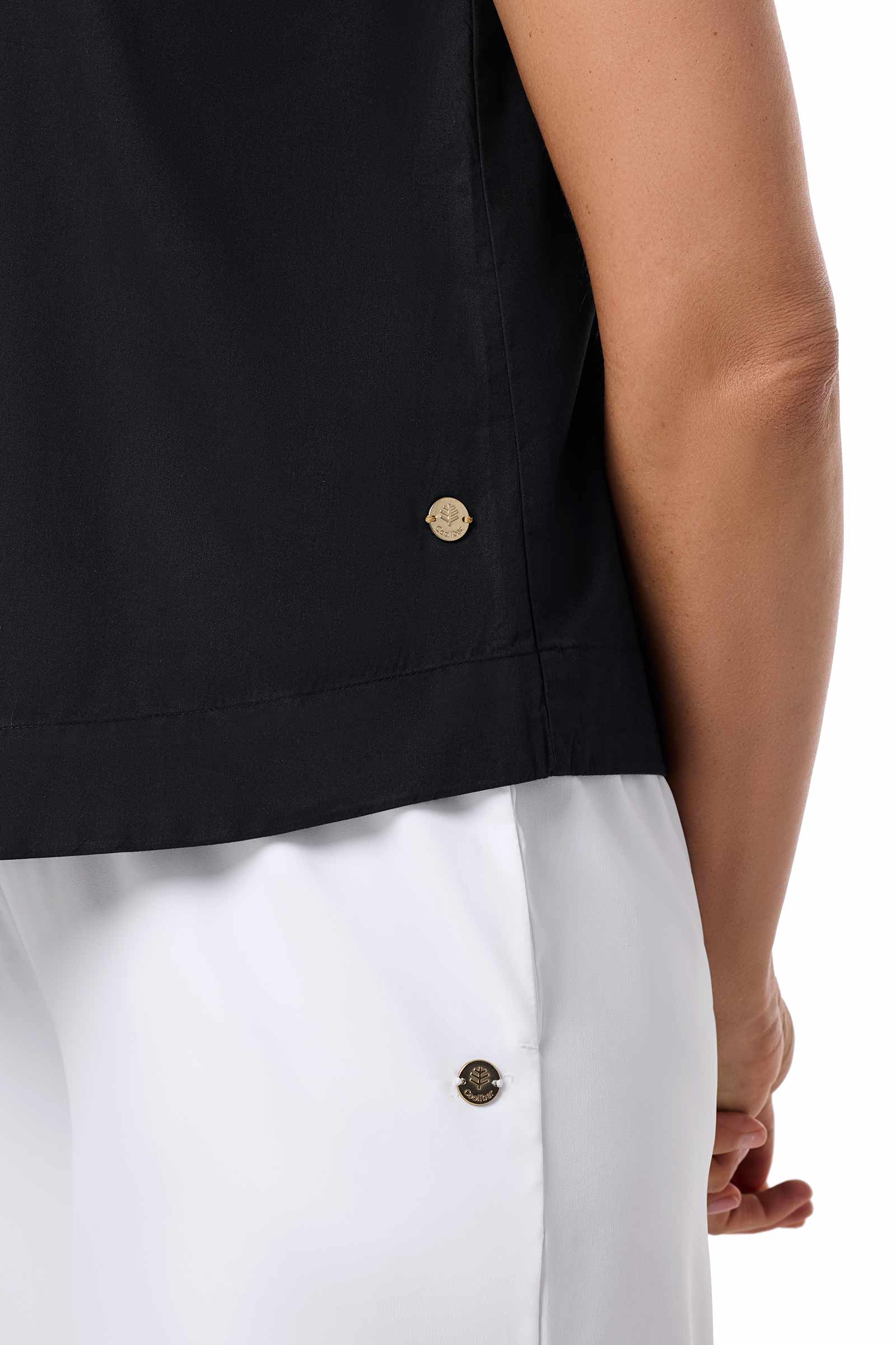 Introducing the NEW UPF50+ Cape Coral Stand Collar Top. Designed for effortless versatility, this sleeveless top is made from our Lightweight Stretch Twill that moves with you throughout the day. It features a structured stand collar, a notched V-neck, and a swing hem for a flattering, modern shape. Equally polished and relaxed, it transitions seamlessly from work to the weekend. Style it with your favorite jeans for a cool, effortless look. Ideal for resort days, it pairs perfectly with denim for daytime sightseeing or with tailored pants for sunset dinners.