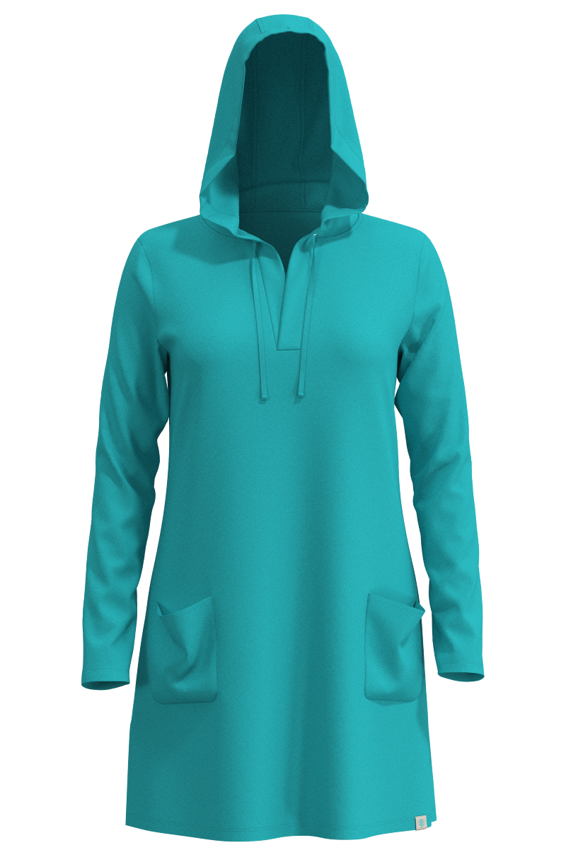 Everything about our lightweight Catalina Beach Cover-Up Dress is relaxed and casual. Loose front pockets, a deep V-neck, a hood with a drawcord all combine to say: let’s go to the beach! ZnO fabric features zinc oxide particles embedded into the fibers. Sun protection that won't wash or wear out!