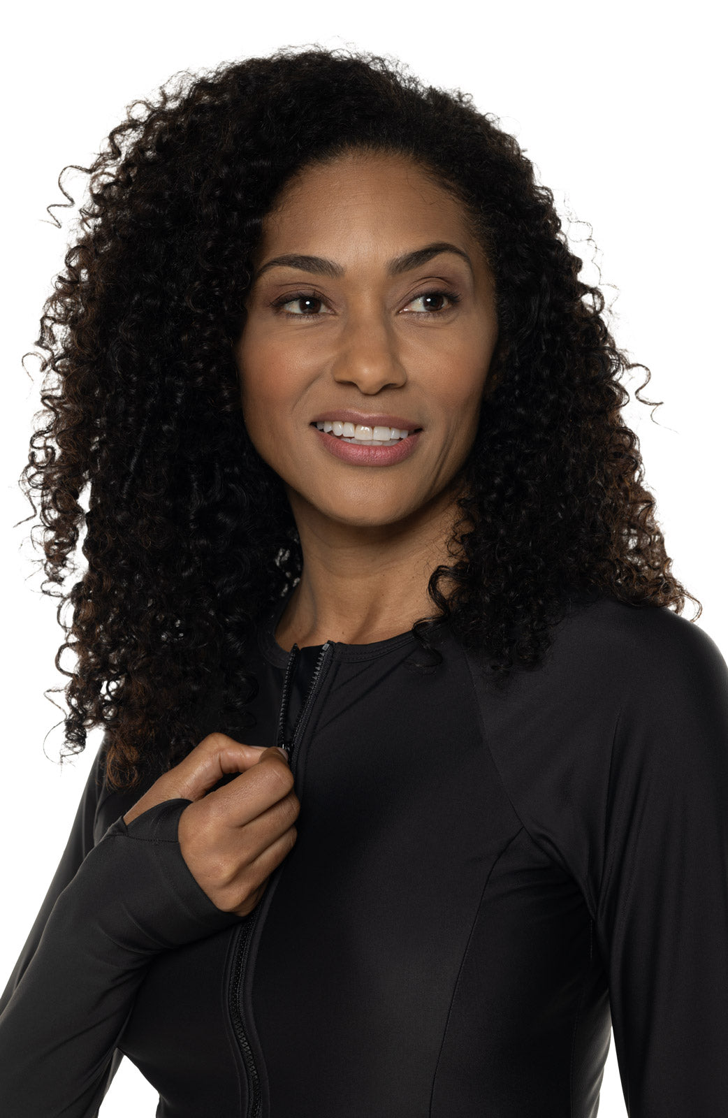 Our high performance Escalante Long Sleeve Swimsuit has a fashionable front zip, sleek design and an ultra flattering shape. This long sleeve bathing suit has sewn-in padded cups for extra coverage and thumbholes to protect the most delicate skin on the top of your hands. Confidently eliminate the need for sunscreen on your most sun prone areas: shoulders, back, chest and arms and enjoy your favorite water activities worry free with this beautiful classic because we've got you covered.