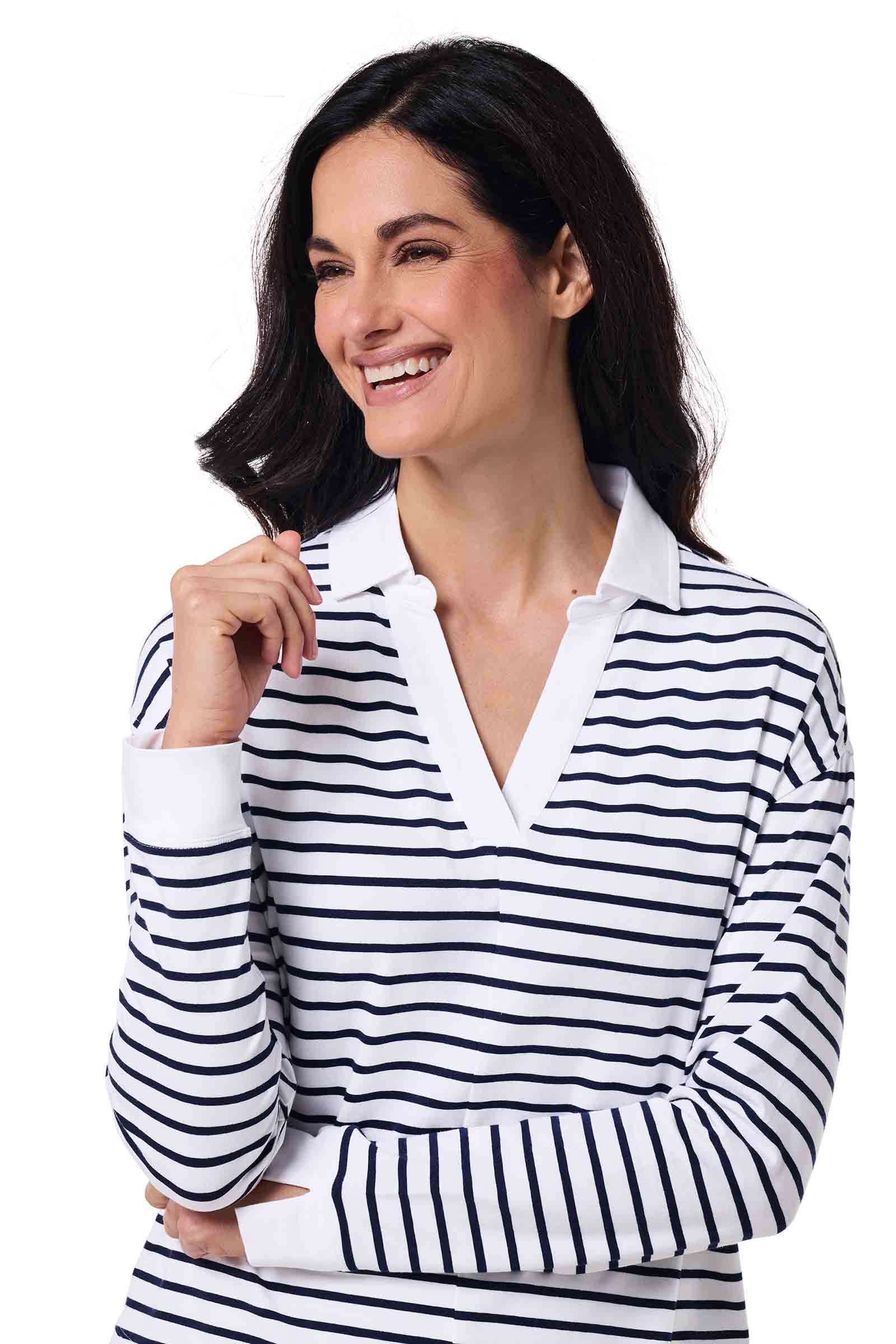 Women's Fontainebleau Polo 2.0 | White/Navy Stripe