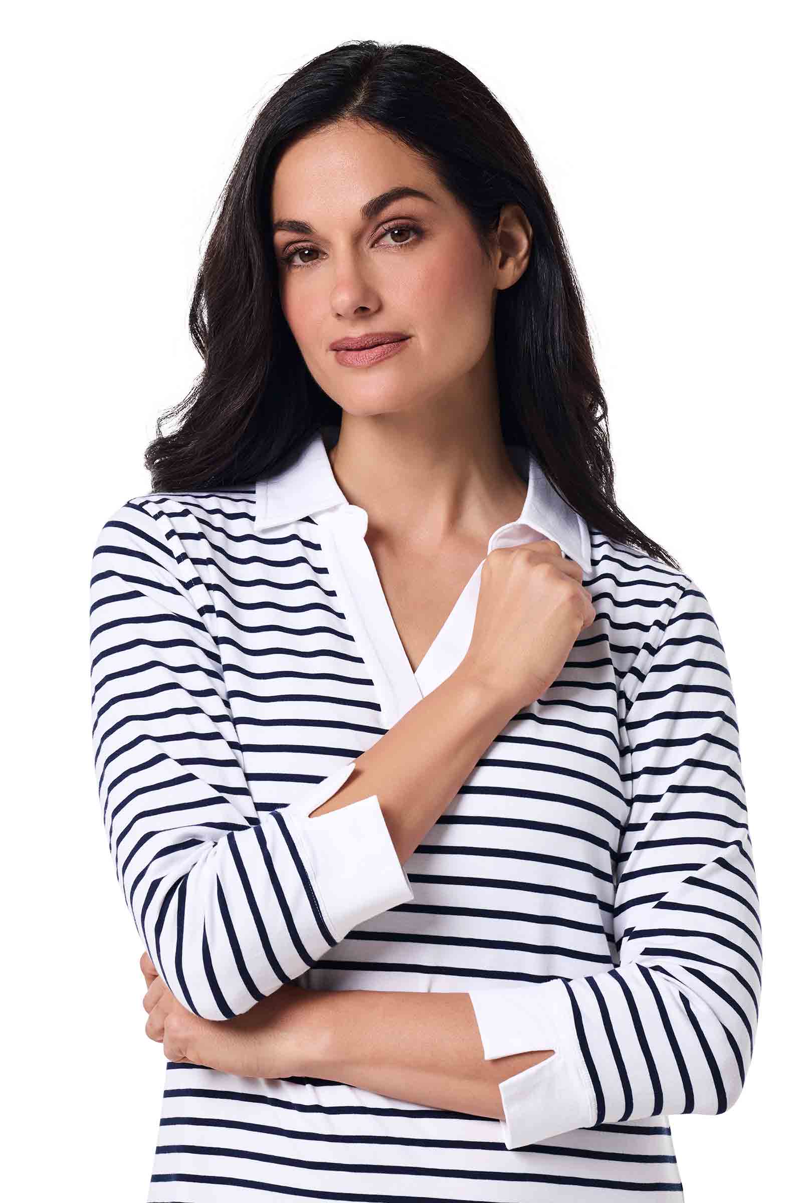 The Fontainebleau Tunic Dress takes inspiration from our beloved Fontainebleau Polo, offering a fresh take on a preppy classic. Made from soft, sun-protective ZnO fabric, it blends timeless style with all-day comfort. With a collared V-neck, 3/4-length sleeves, and side slits, this relaxed-fit dress hits at mid-thigh for a polished yet easygoing look. It’s a versatile pick for weekend brunch, vacation sightseeing, casual office days, or tossing on after a morning at the beach.
