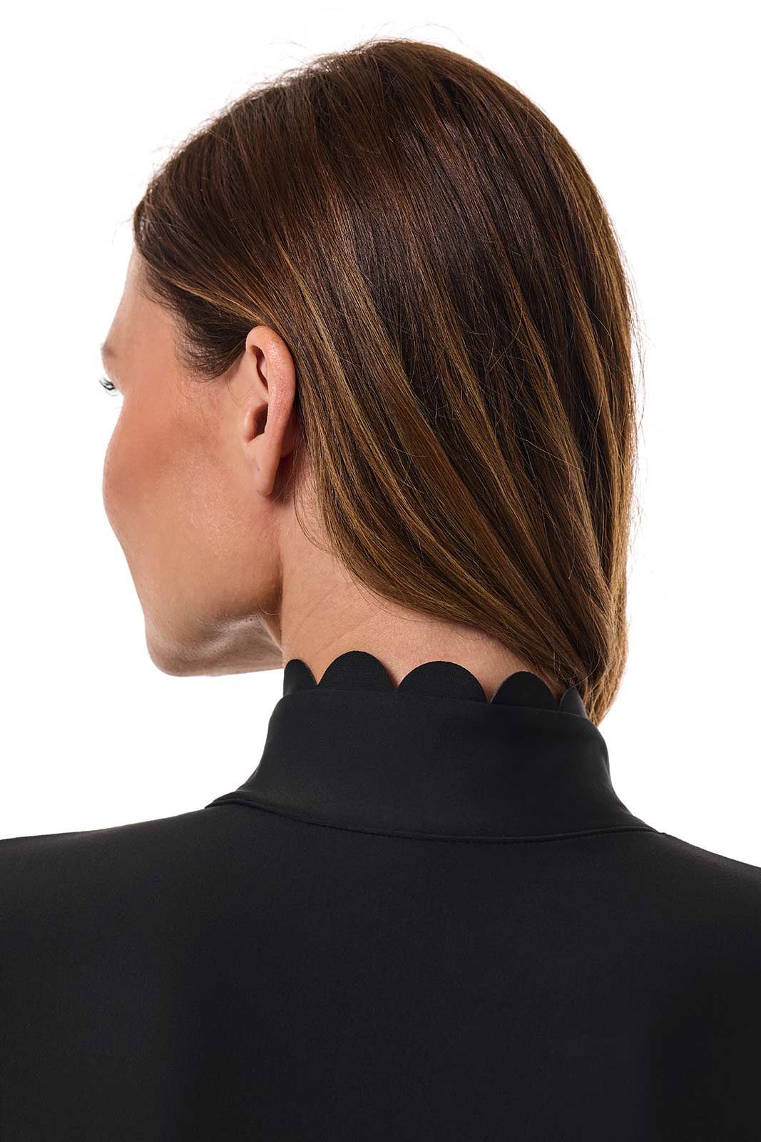 Women's Great Star Scallop Long Sleeve Swimsuit - Black