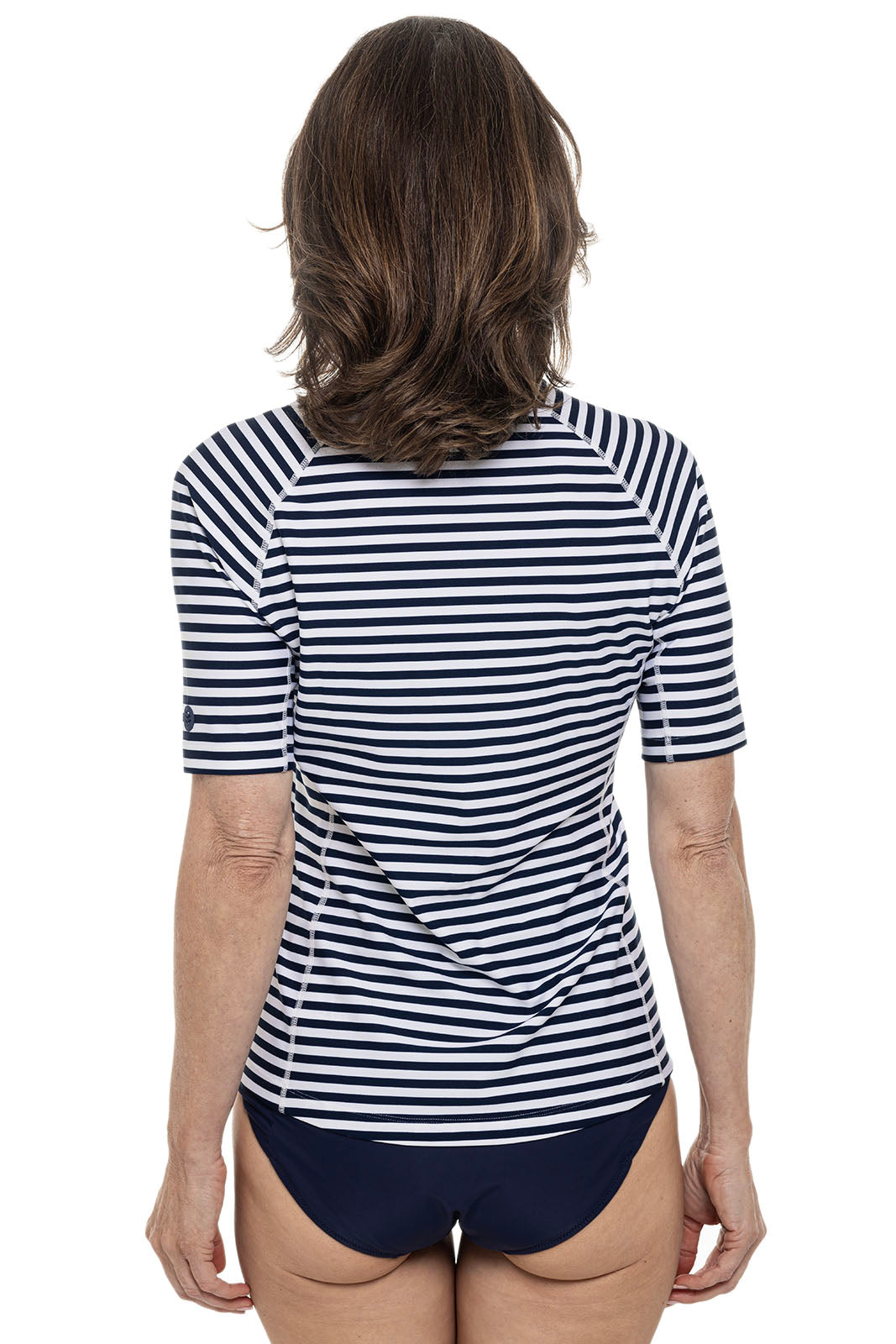 Women's Hightide Short Sleeve Swim Shirt - White/Navy Stripe