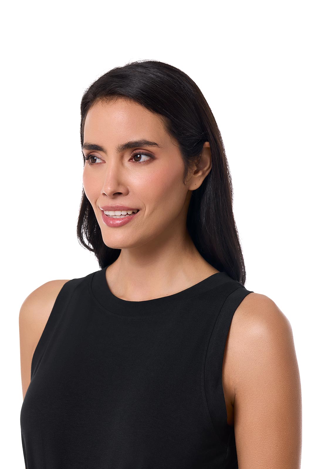 The Jupiter Midi Tie Dress offers a flattering, fitted silhouette with a crew neck and a waist tie that accentuates the waist. Made from our soft ZnO fabric, it provides added comfort and sun protection. Its sleeveless design and midi length create a timeless look, while the back center slit adds a subtle touch. Easy to dress up or down, this versatile style pairs just as well with sandals for brunch or a casual outing as it does with heels for dinner or special occasions. Wherever the day takes you, this dress combines style, comfort, and sun safety in one effortlessly chic piece.