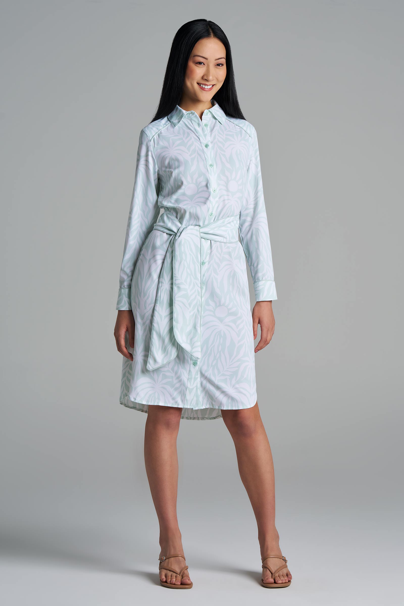 Our Kitts Shirt Dress is effortlessly versatile. Wear it open as a beach cover-up or out to dinner as a belted, button-up dress! Protect your skin in our most luxurious UPF 50+ fabric from the shirt collar to the curved hem -- its silky soft, feather-light and performs well in heat and humidity. The Kitts Shirt Dress is effortlessly versatile wear it open as a beach cover-up or out to dinner as a belted, button-up dress! Protect your skin in our silky-soft, feather-light UPF 50+ Aire fabric.