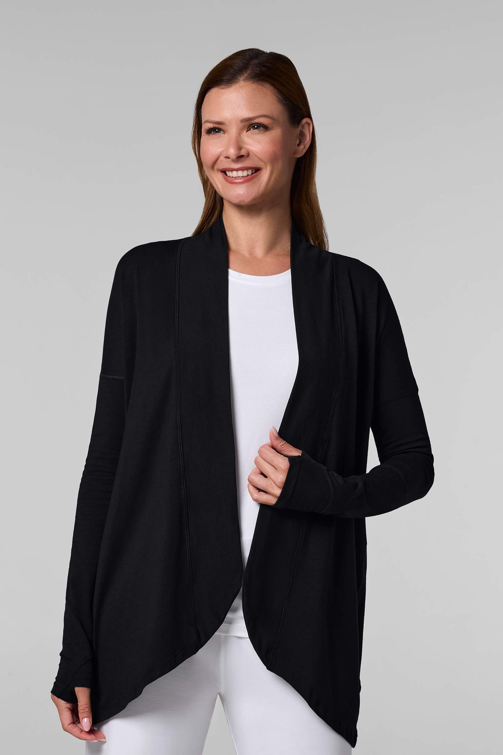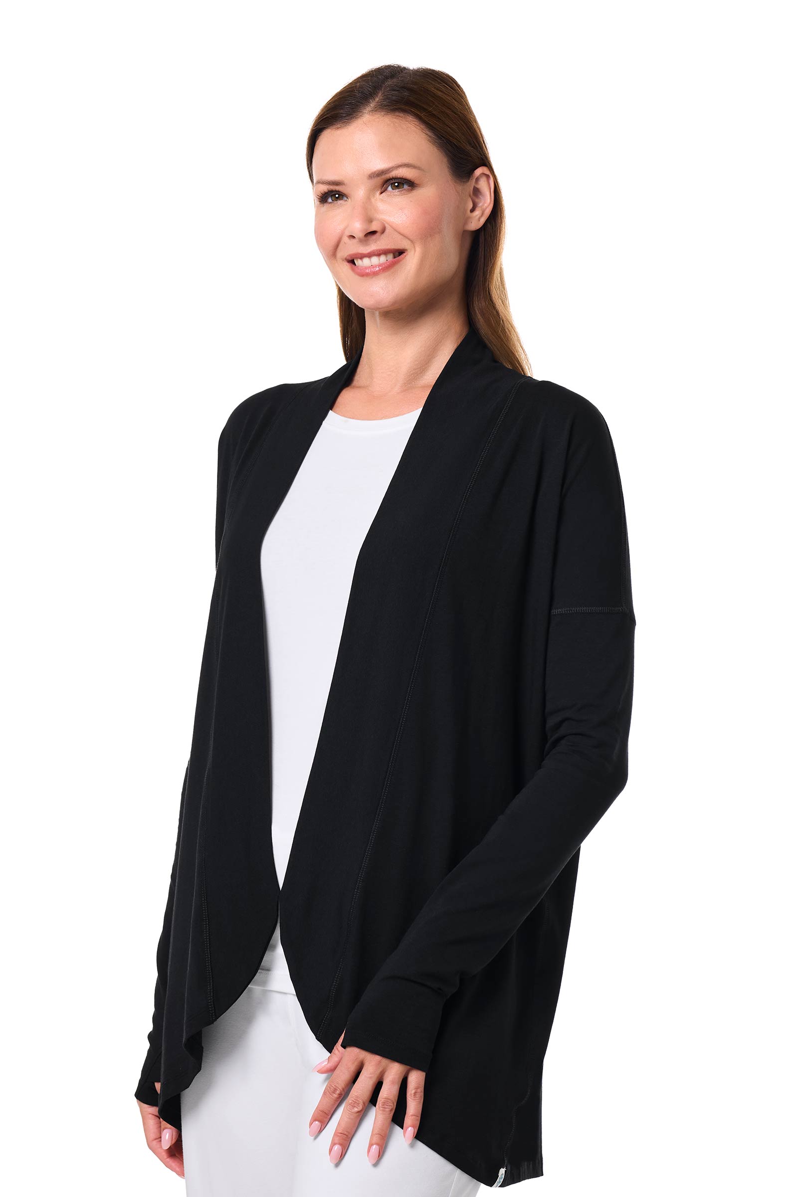 Our versatile Lumaleo Sun Wrap offers on-the-go UPF 50+ coverage whenever your arms, shoulders, or legs need extra shade. Made from our super-soft Cotton ZnO™ fabric, this lightweight sun wrap features an extended shawl collar, full-length sleeves with thumbholes, and a feminine back slit detail for easy movement and style. Perfect for layering, it provides added sun protection during outdoor picnics, lounging on a patio, ferry rides, casual sightseeing, or strolls. This wrap brings sun-smart style and effortless flair to your everyday routine.