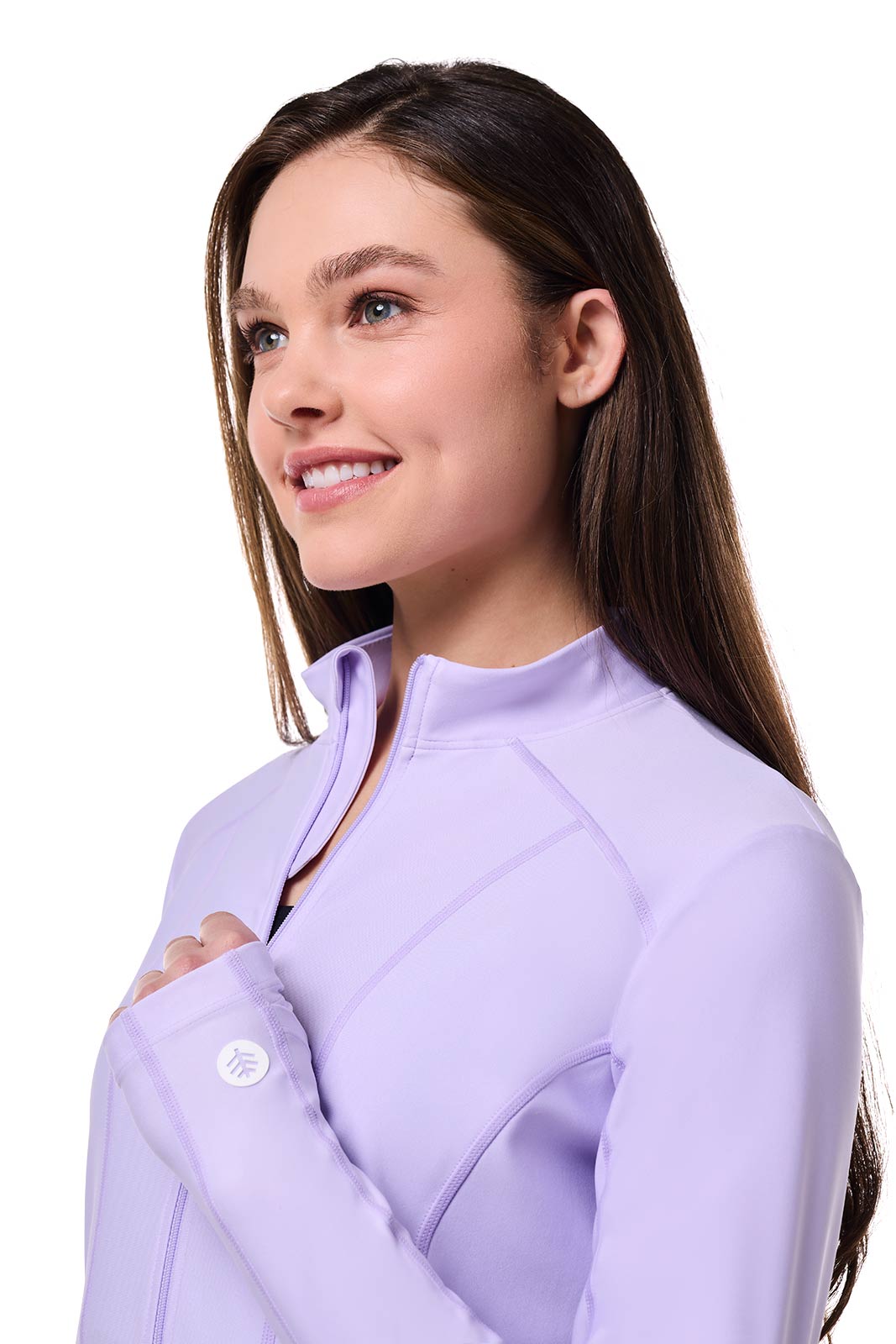 Lightweight and quick-drying swim jacket provides comfort in and out of the water. This full zip rash guard allows for easy on and off in a sleek design that fits comfortably and looks slimming. A side zip pocket offers a place to keep your keys or other small valuables.