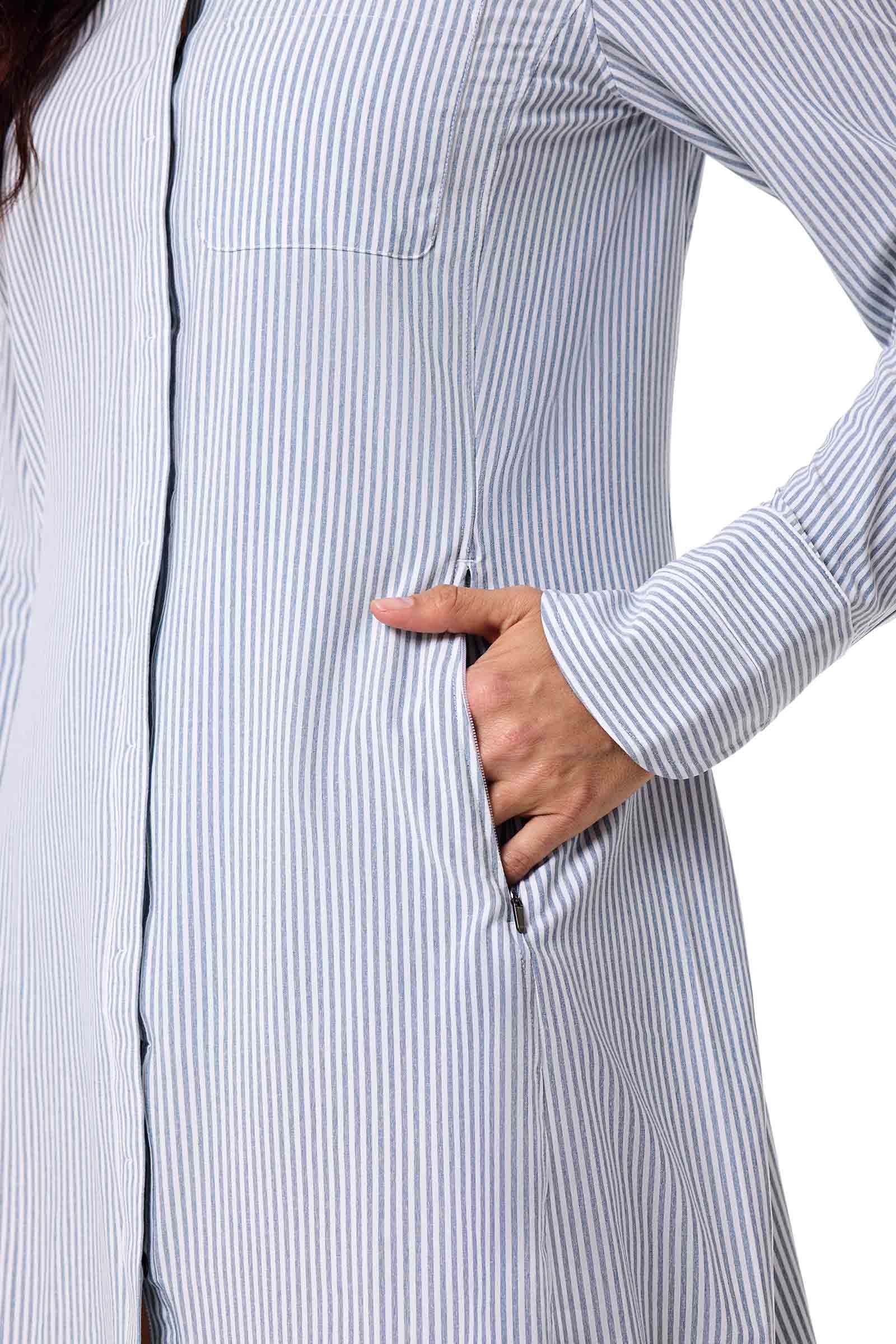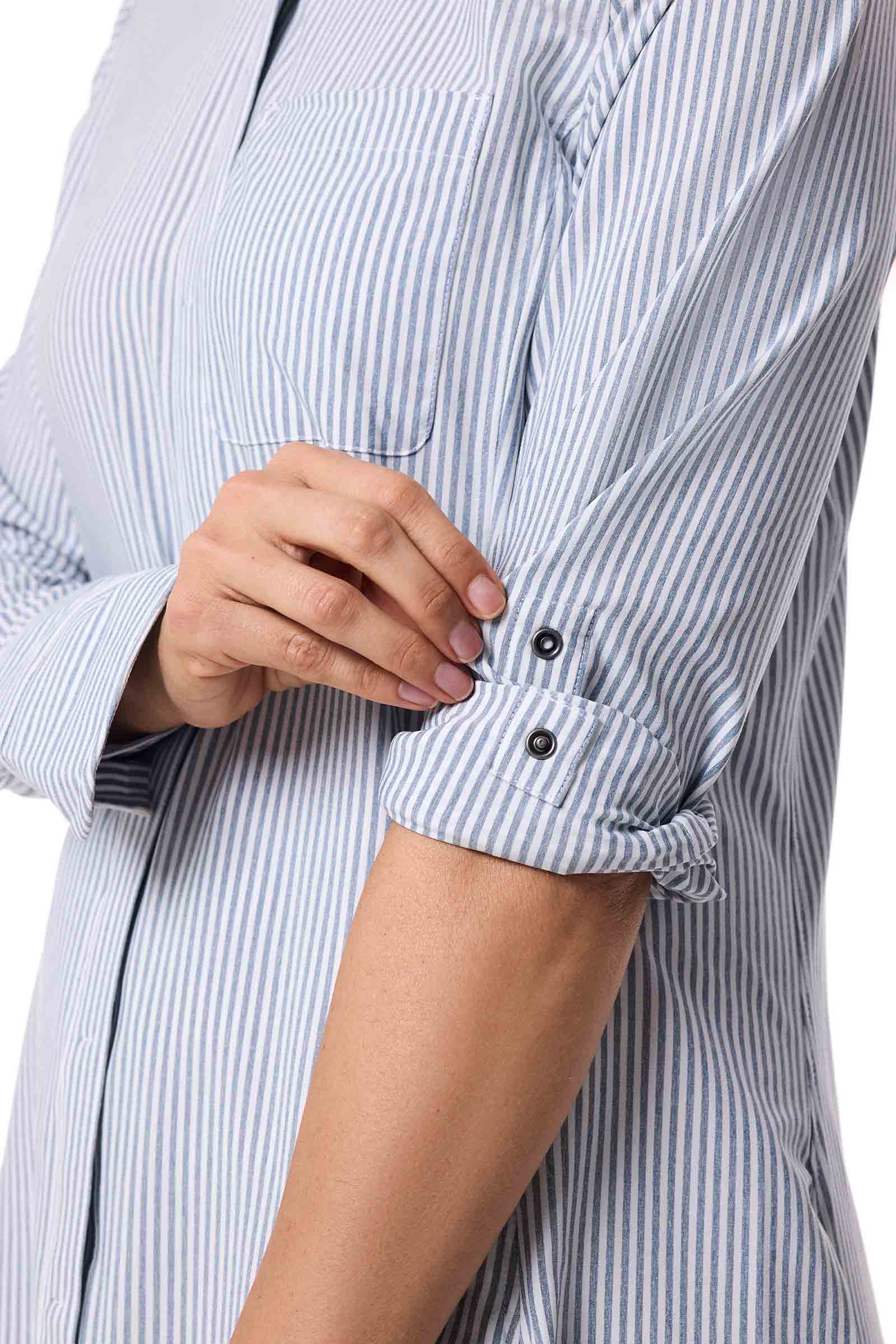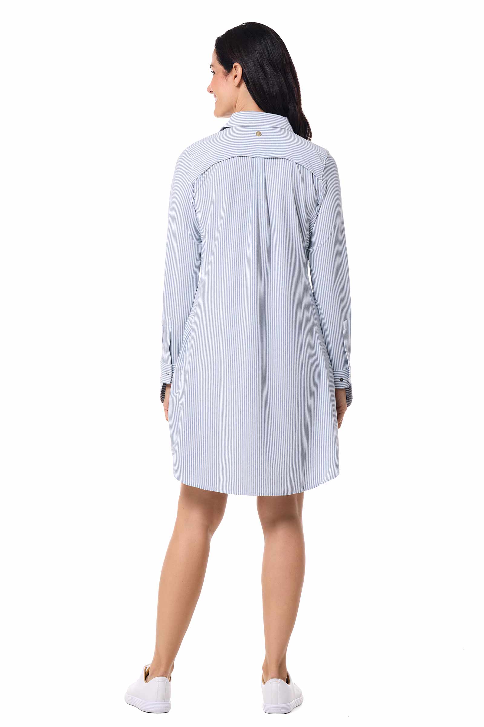 Women's Malta Travel Shirt Dress - White/Navy Stripe