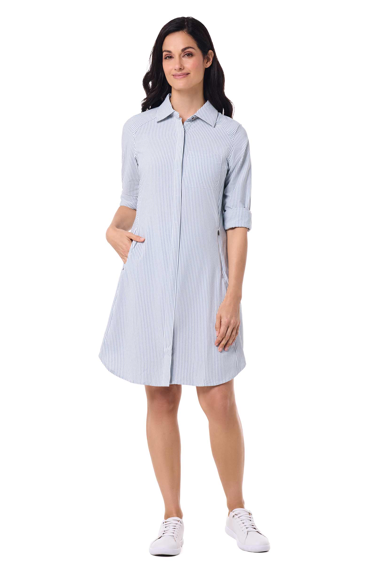 Women's Malta Travel Shirt Dress | White/Navy Stripe