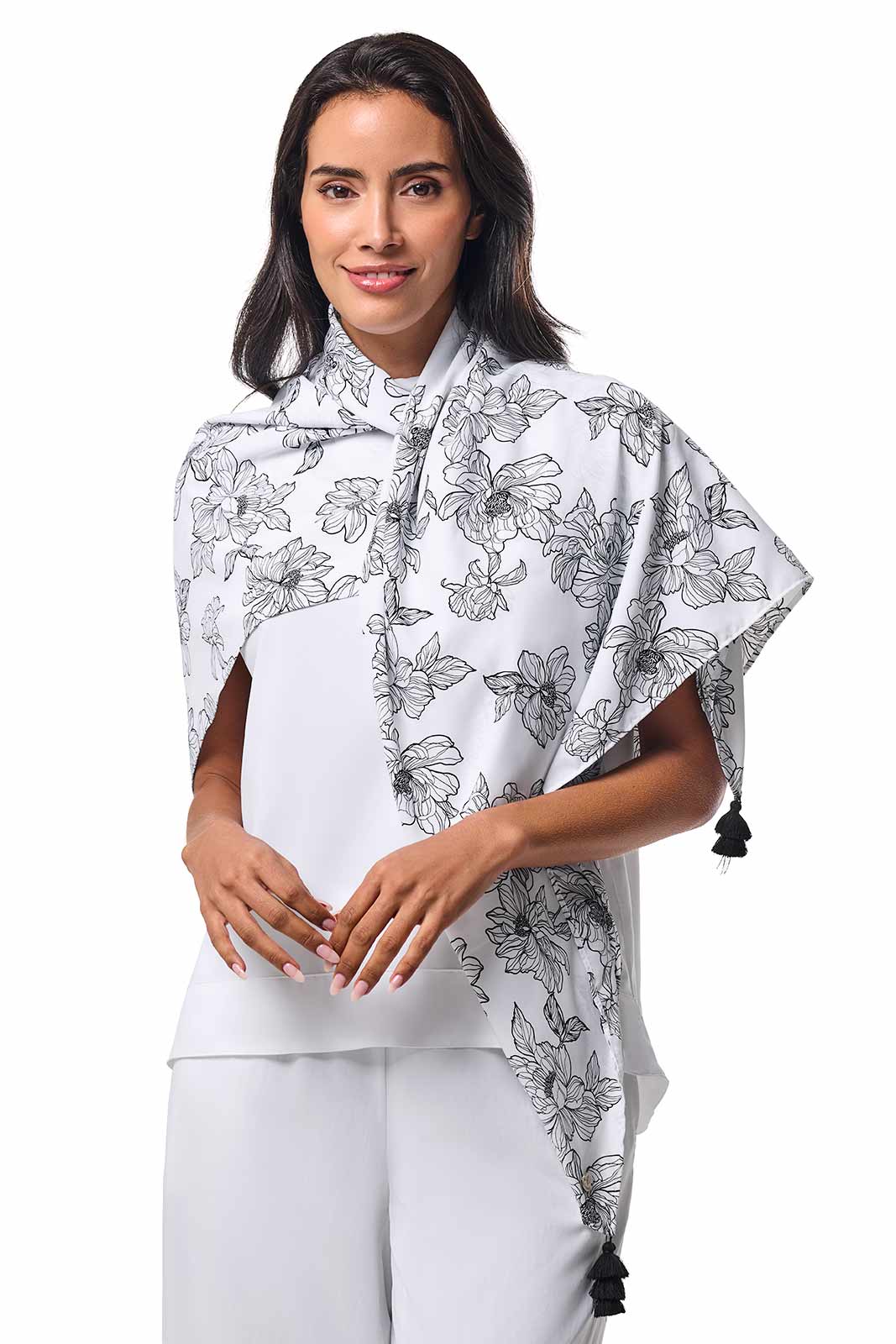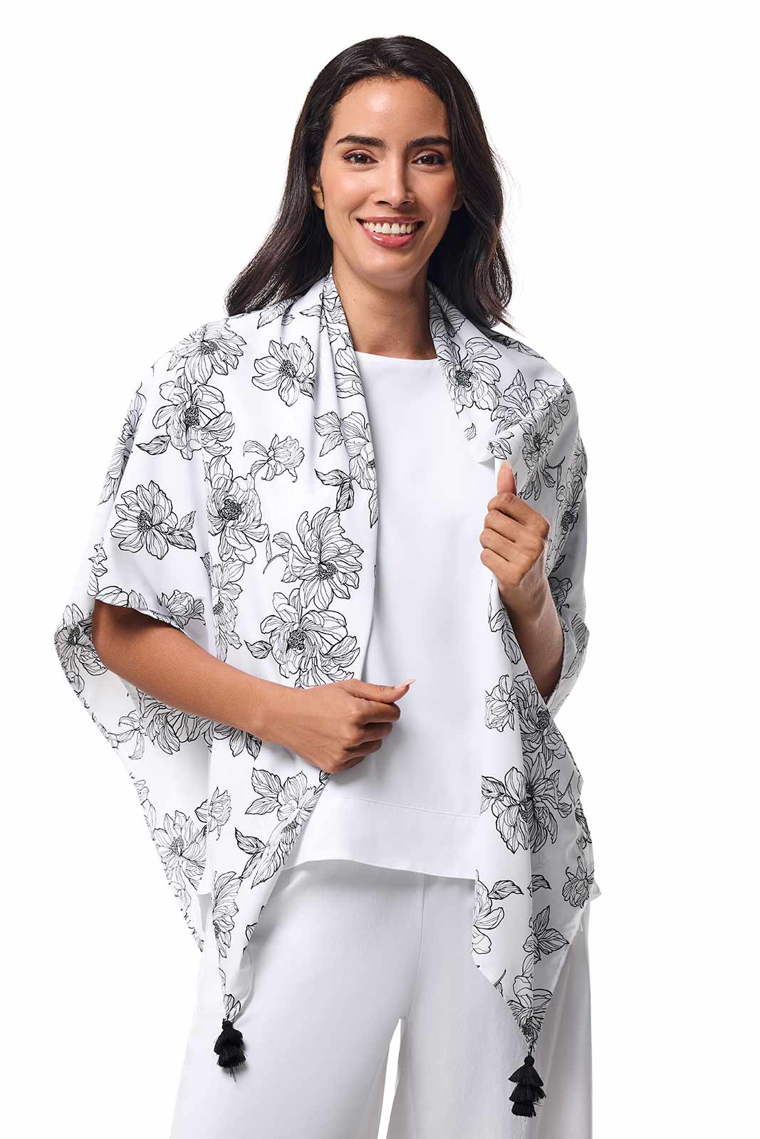 Women's Minneola Featherlight Scarf | White/Black Perfect Peony