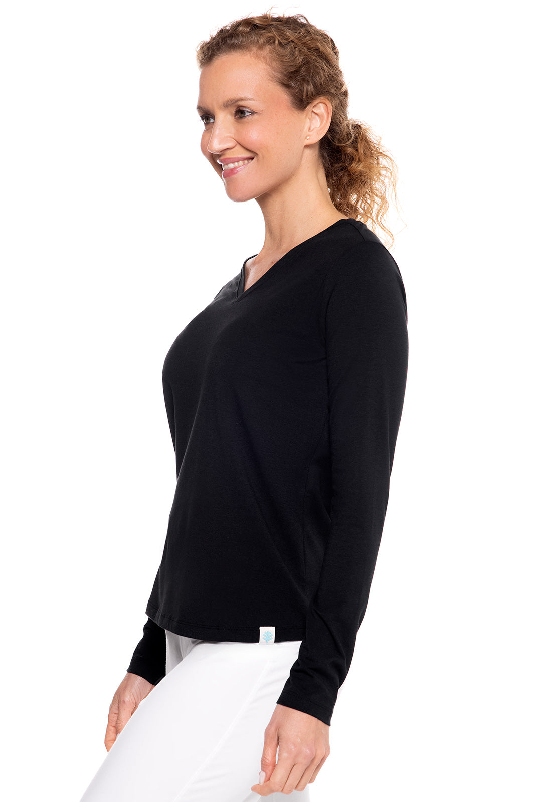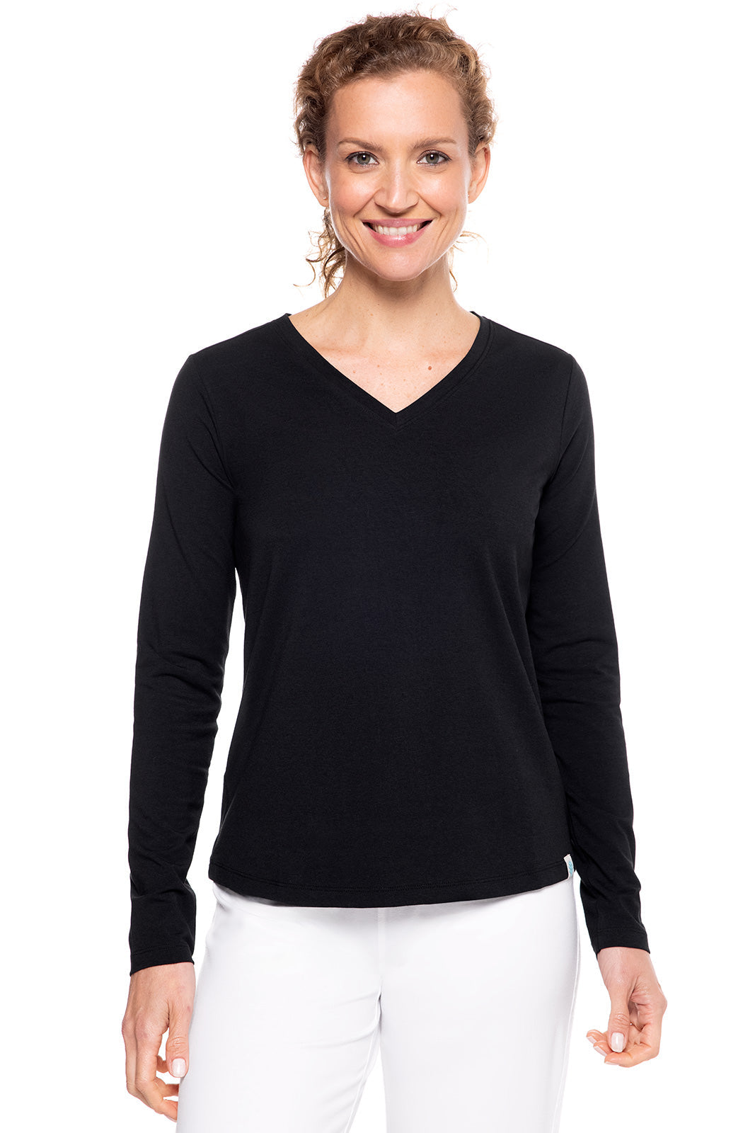 Women's Morada Everyday Long Sleeve V-Neck T-Shirt | Black