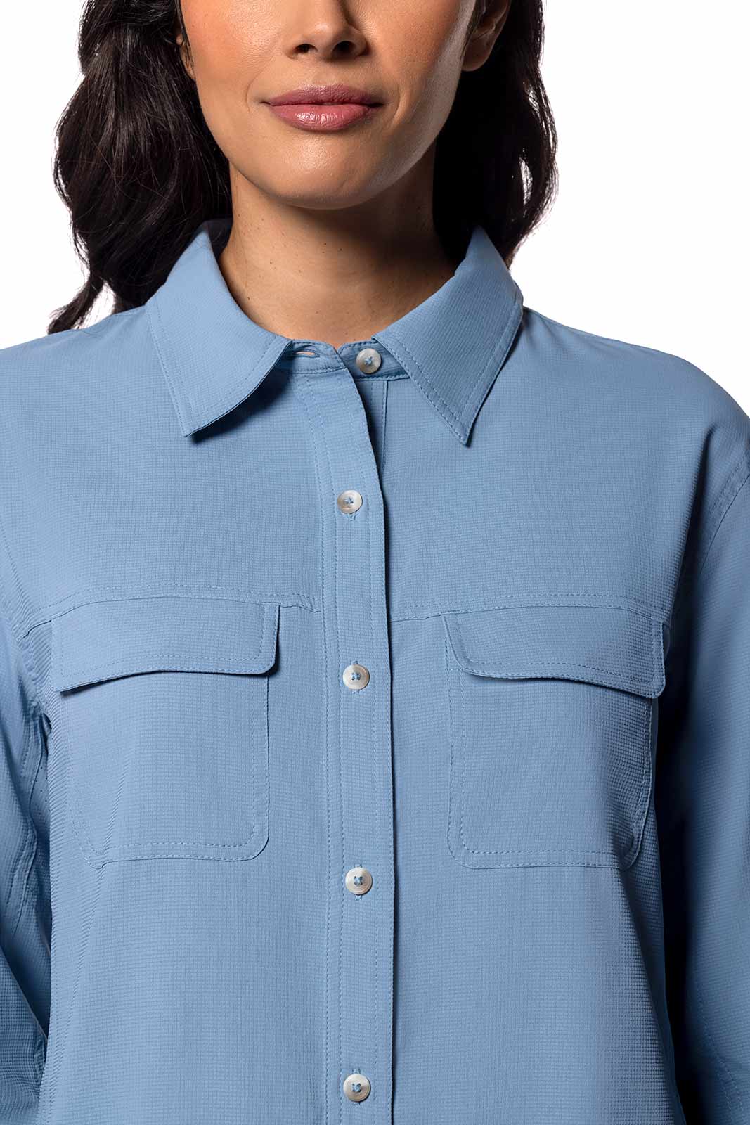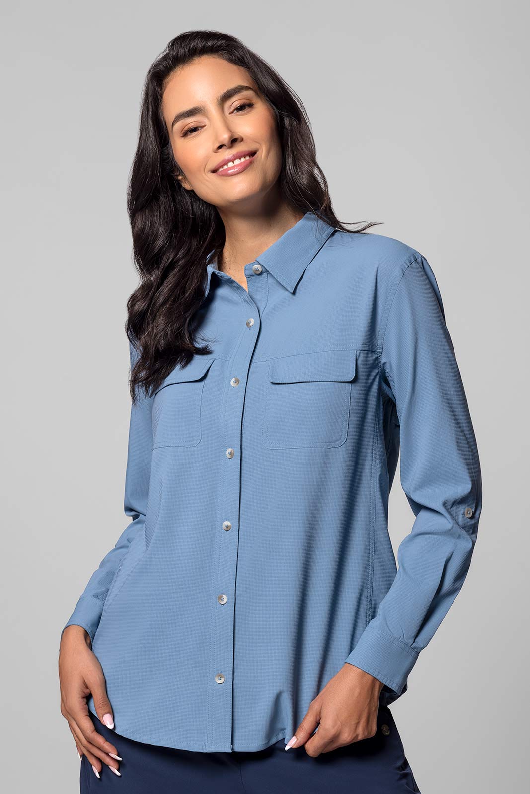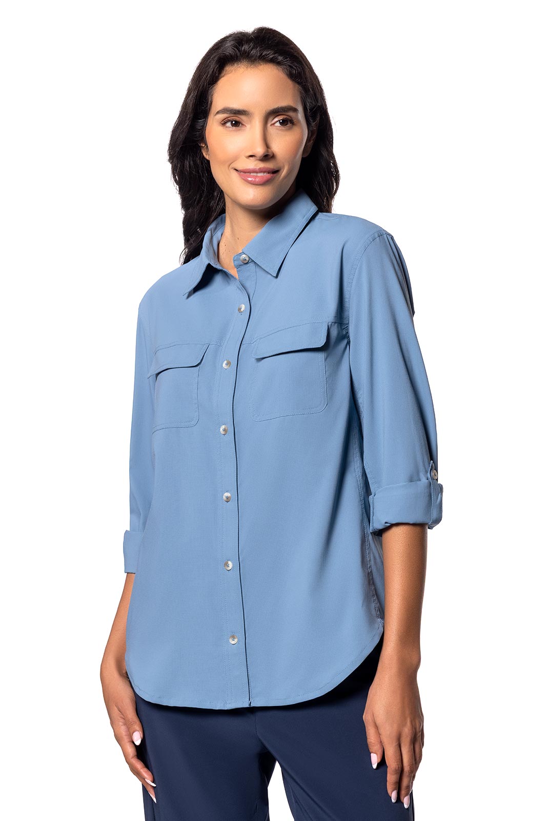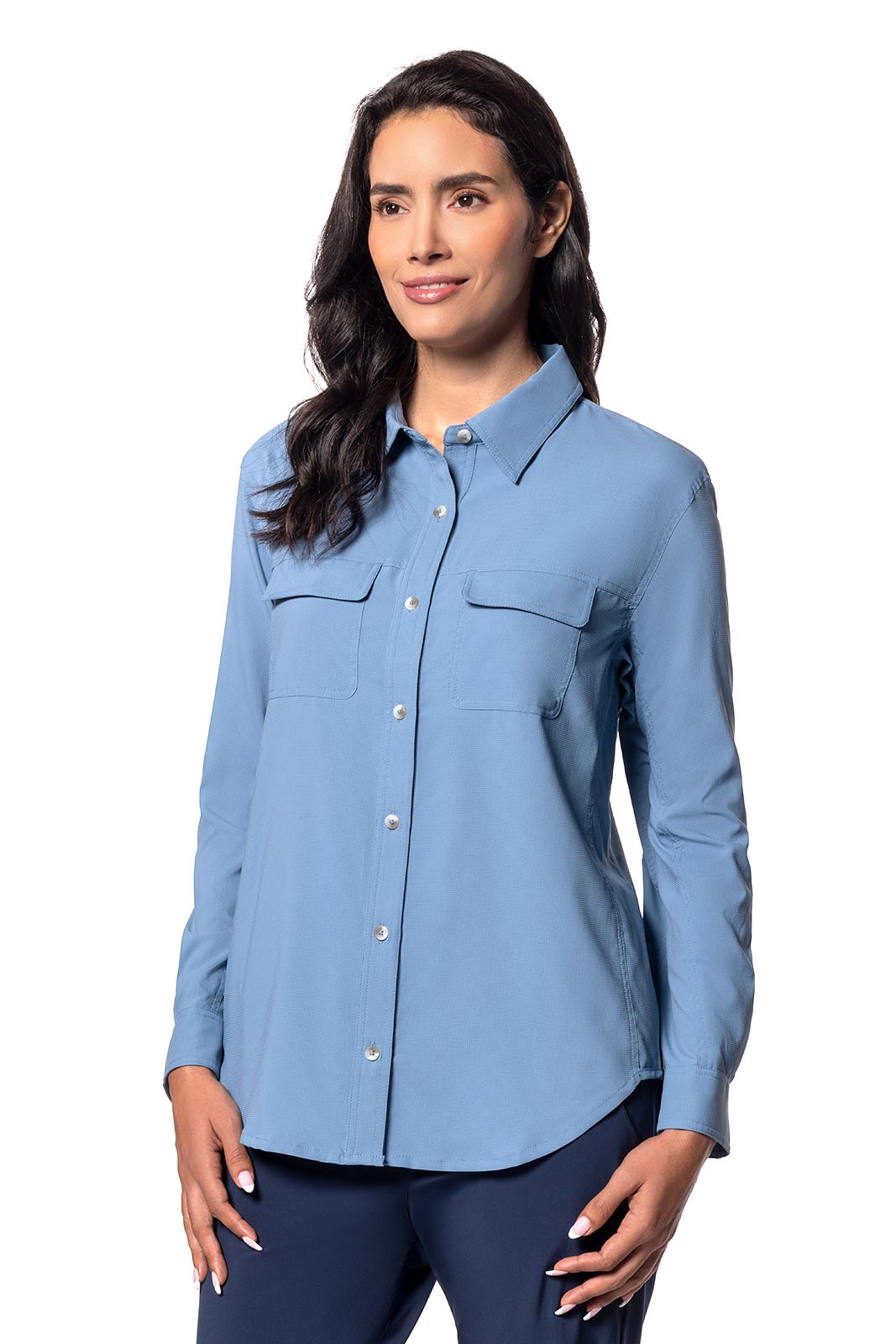 The Mylitta Travel Shirt is the ultimate lightweight travel shirt, designed for comfort, breathability, and sun protection on the go. It features two front pockets, roll-up sleeves, and strategically placed vents that enhance airflow through the shoulders and underarms. Whether you're navigating airports, heading out on a road trip, catching a train, exploring a new trail, or just hanging out on a cruise deck, this sun shirt keeps you cool, covered, and ready for whatever the day throws your way