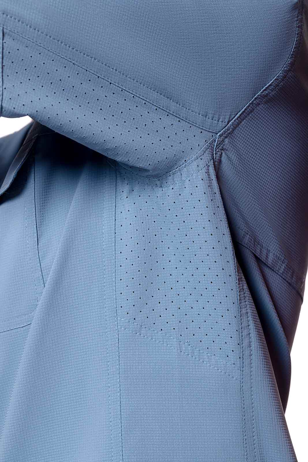 The mesh ventilation panels featured on this garment provide increased air circulation to promote cooling and help the wearer stay dry. The ventilation panel areas of this product may be subject to lower levels of UPF protection when exposed to direct sunlight depending on use. We recommend the use of SPF and UPF protections for all exposed skin areas and areas that may require additional protection depending on your use.