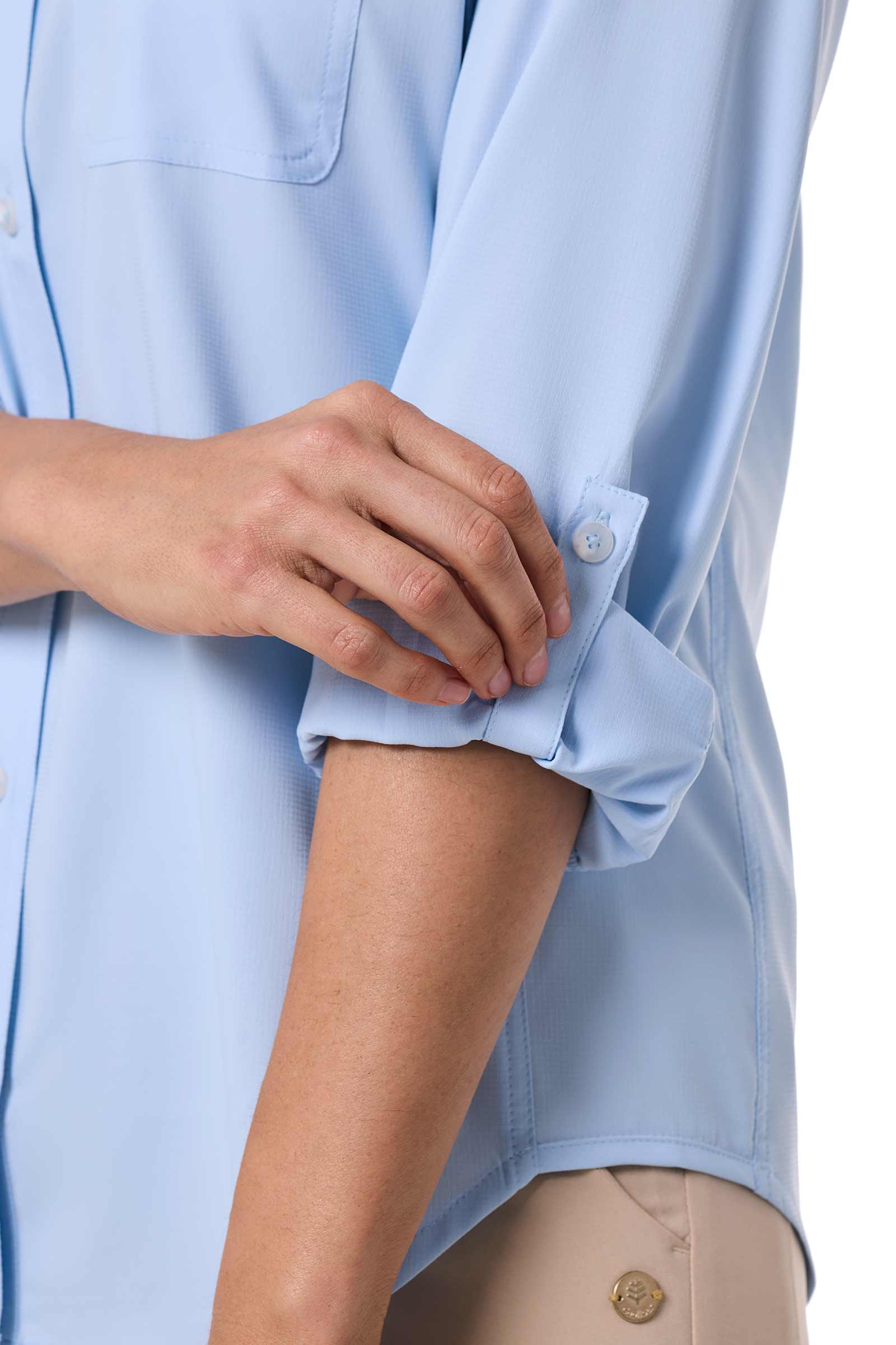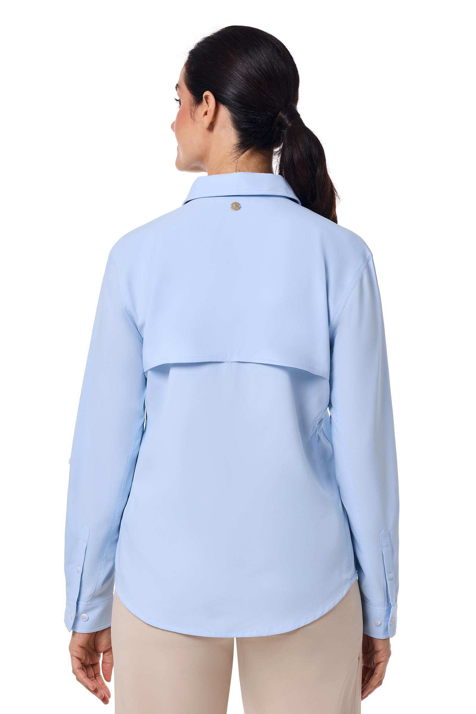 The Mylitta Travel Shirt is the ultimate lightweight travel shirt, designed for comfort, breathability, and sun protection on the go. It features two front pockets, roll-up sleeves, and strategically placed vents that enhance airflow through the shoulders and underarms. Whether you're navigating airports, heading out on a road trip, catching a train, exploring a new trail, or just hanging out on a cruise deck, this sun shirt keeps you cool, covered, and ready for whatever the day throws your way