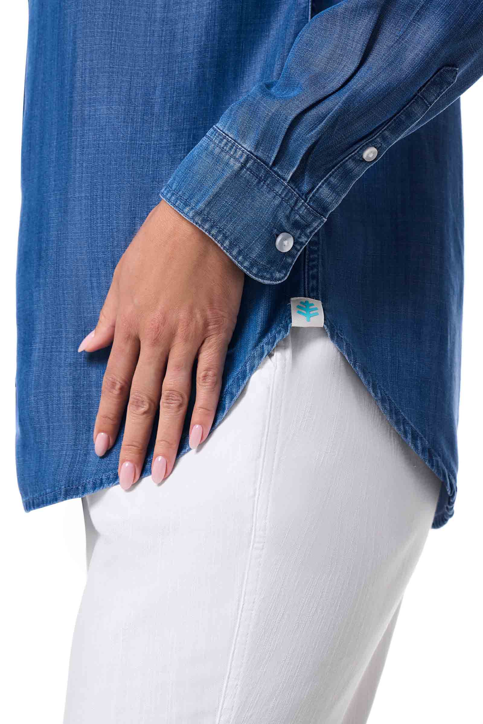 The Peninsula Chambray Shirt is an easy, everyday layer with a sun-protective twist. Made from lightweight ChambrayLite™ fabric, it's soft, breathable, and perfect for all-day wear. Details like a button placket, roll-up sleeves, and chest pockets add laid-back polish. Pair with our Enclave Weekend Pant for a cool, casual outfit it is great for shopping, travel, or lunch with friends.