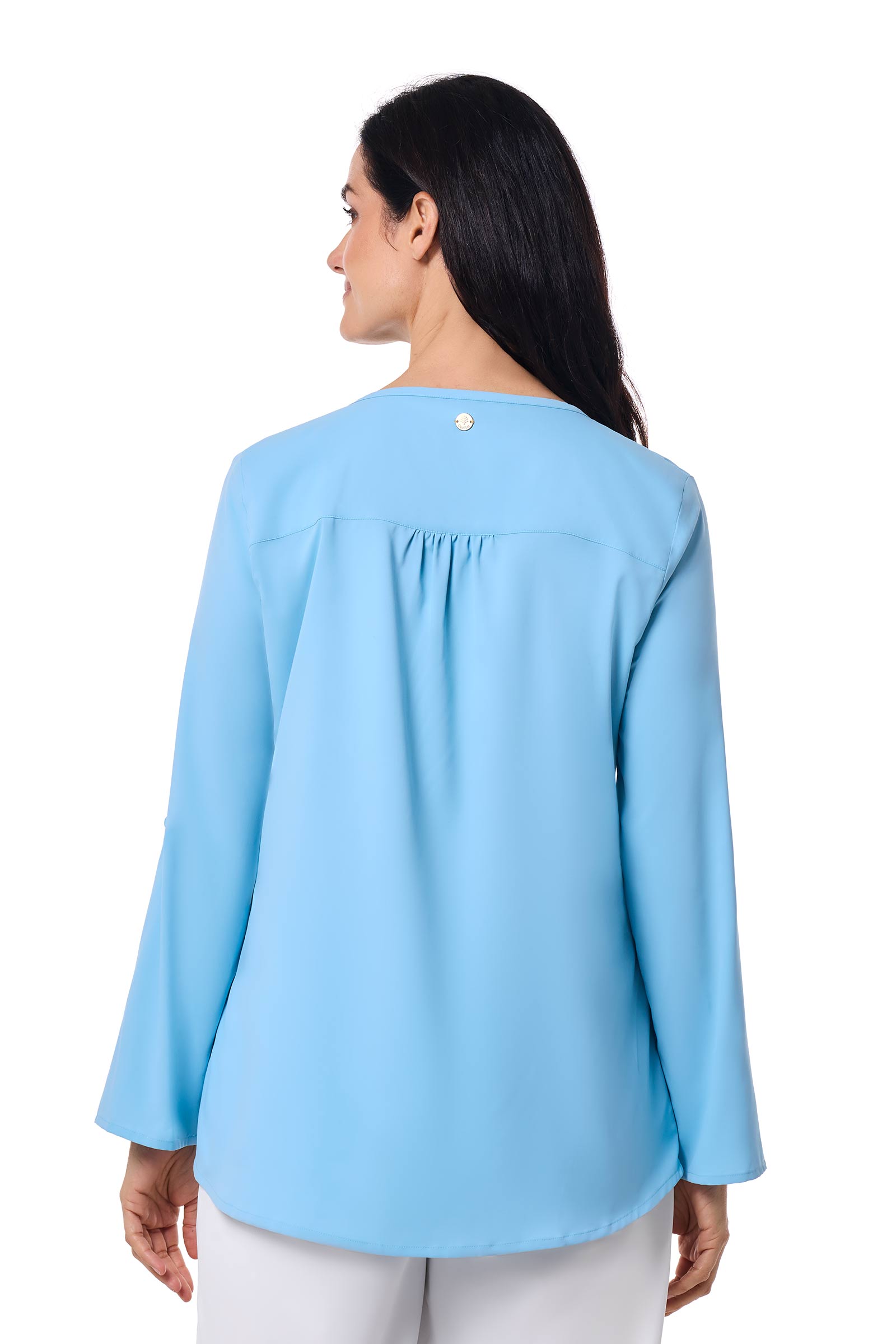 Bring graceful movement into your day in a tunic top so fabulously cool against your skin, you’re sure to look polished even when the sun is high. Our garden party tunic top is silky smooth, with a split collar neckline, roll-tab sleeves and a gorgeous high/low asymmetrical hem. Designed for relaxed resort moments, it can trabsition from poolside lounging to casual outdoor dinners with effortless polish.